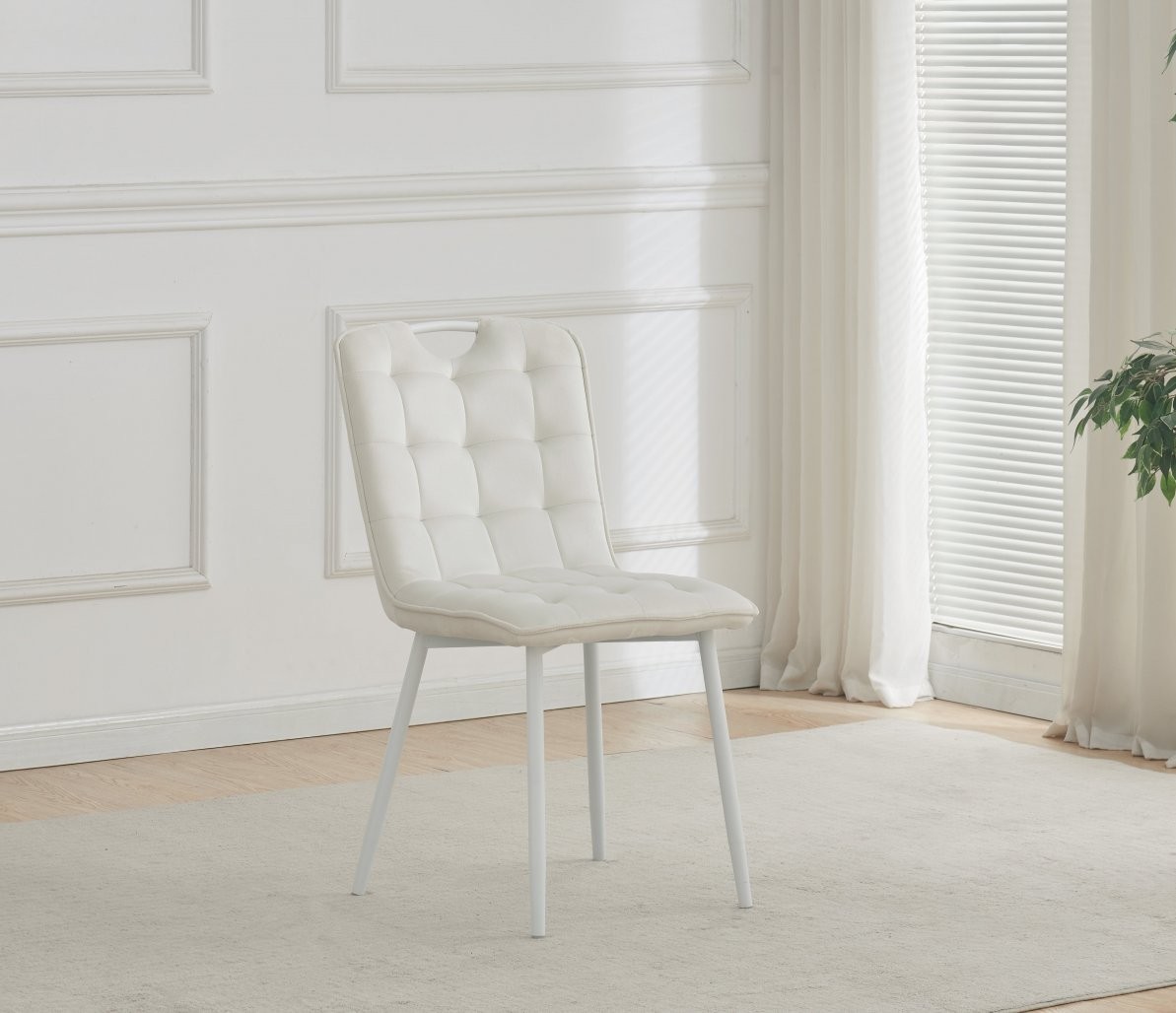 Jedilni stol MILIK (bela) je elegantna izbira za vsako jedilnico. Kvalitetna tkanina in kovinska konstrukcija zagotavljata udobje in vzdržljivost, bela barva pa se lepo poda k različnim slogom pohištva.