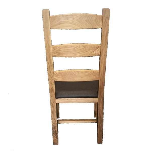 JEDILNI STOL OLIVIA je oblazinjen jedilni stol, narejen iz masivnega oljenega hrastovega lesa. Stol ima udobno oblazinjeno sedišče iz umetnega usnja v rjavi barvi. Ponaša se s kvaliteto in udobjem. Preverite še našo ostalo ponudbo jedilnih stolov.