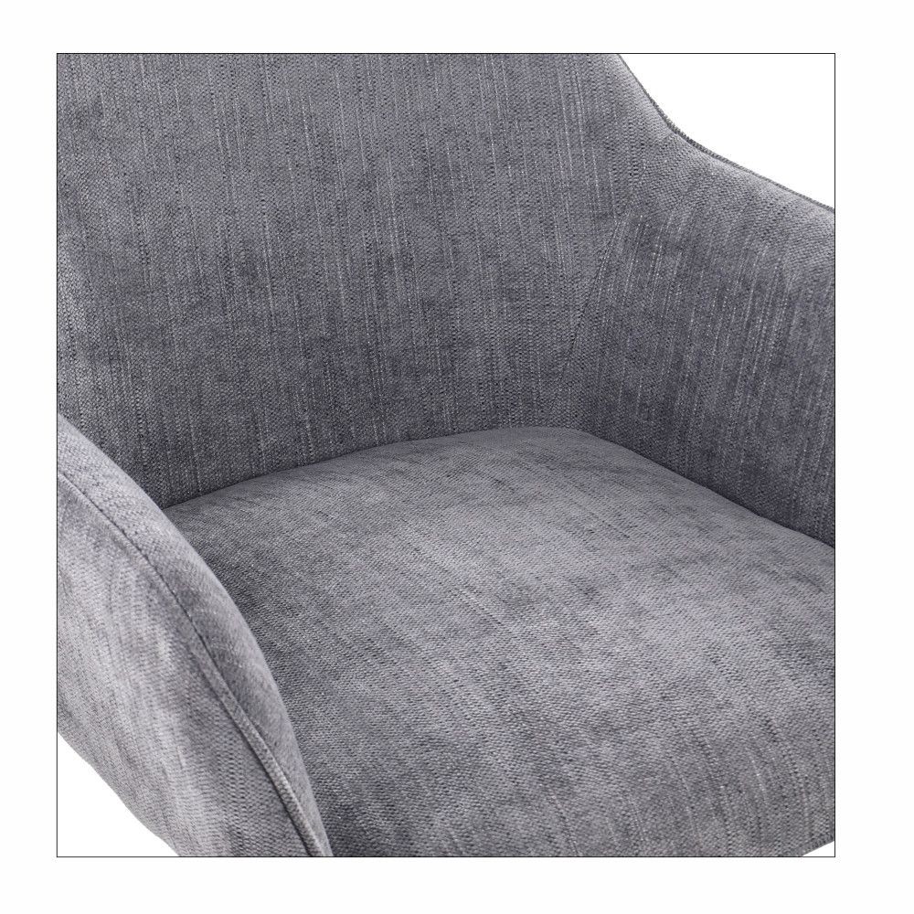Udobje vredno bogov bo vaše s sodobnim jedilnim stolom PERUN! Ta elegantni jedilni stol je polnjen s peno debeline 9 cm in oblazinjen v debelo in mehko sivo tkanino, tako da se boste počutili kot da sedite na oblaku. Dodaten bonus sta priročna rokonaslona ter 180° vrtljivost stola.