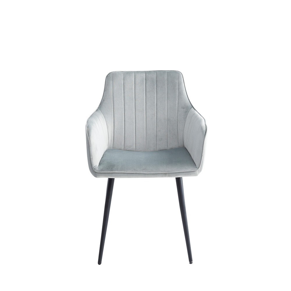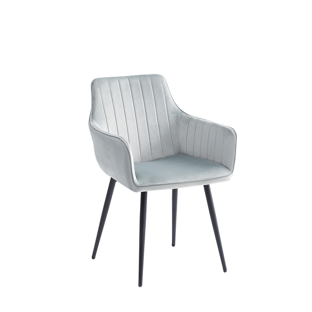 Jedilni stol ROBI je modernega izgleda, oblazinjen s tkanino za lepši izgled in večje udobje. Nakup jedilnih stolov ROBI bo v vaš jedilni prostor prinesel svežino, ki ste jo iskali in vam postavil zadnji kamenček v mozaik popolno opremljene jedilnice. Nogice so prašno lakirane v črno barvo in narejene iz kovine. Maksimalna obremenitev znaša 120 kg.