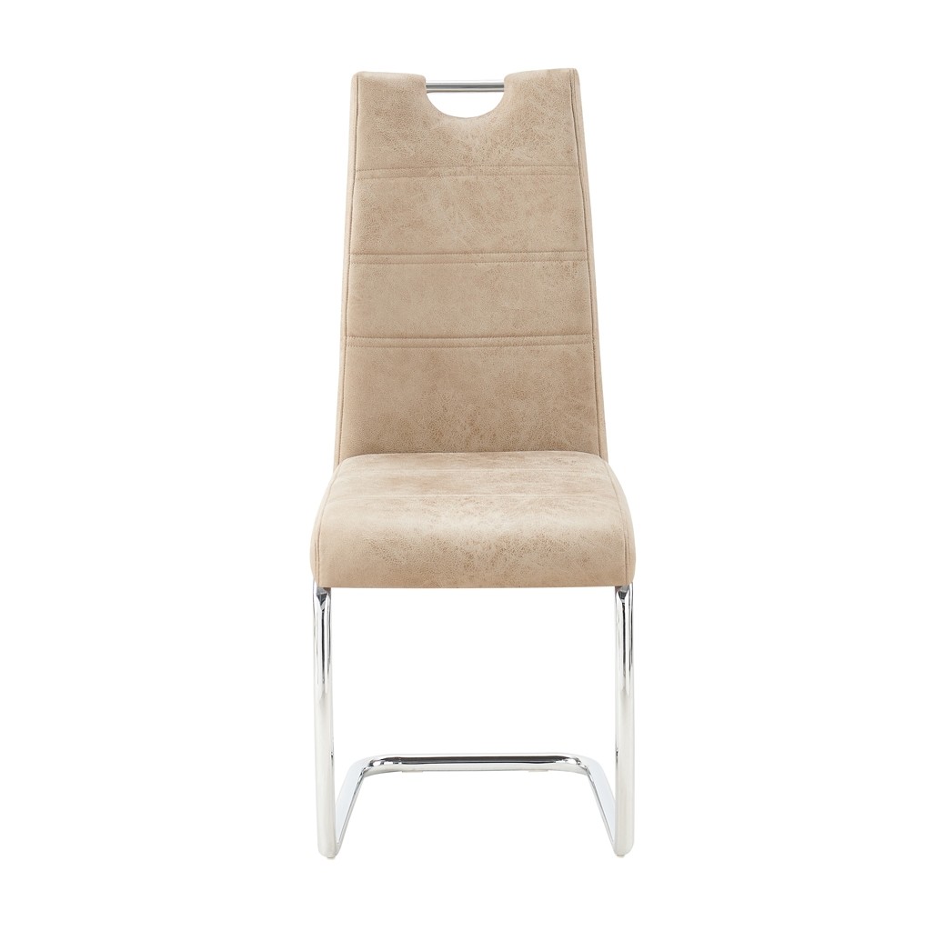 Preprost jedilniški stol ROMA je idealen stol, če potrebujete svežino in udobje v vaši jedilnici. Stol je oblazinjen z mikrofibro, ki je enostavna za vzdrževanje. Podnožje stola je kovinsko kar daje stolu dodatno stabilnost in varnost. Višina sedišča je 47 cm.