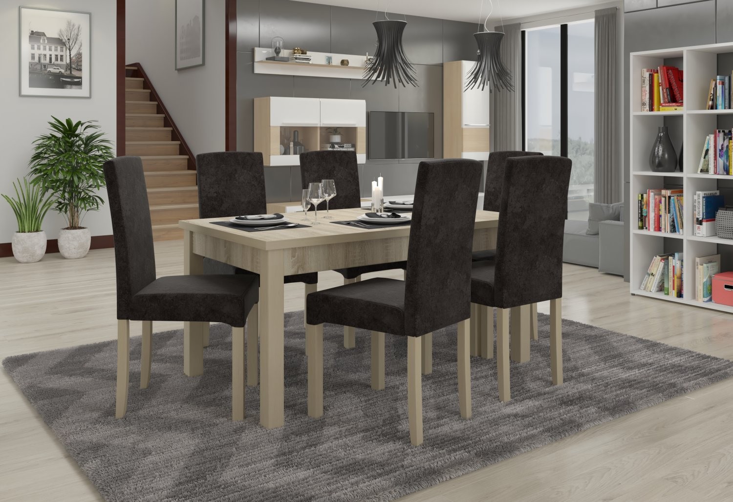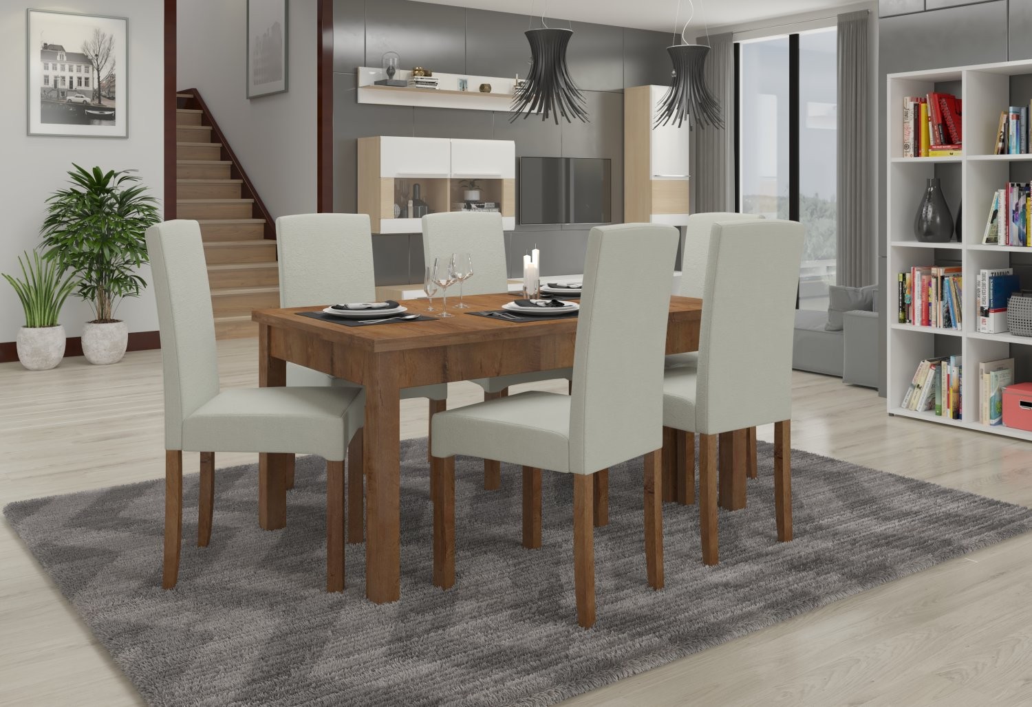 Jedilniški komplet RODOS 56 je popolna izbira za sodobne jedilnice, dnevne sobe ali kuhinje. S svojo elegantno obliko in funkcionalnostjo bo dopolnil vsak prostor.