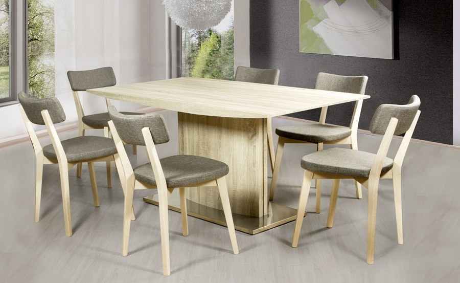 Jedilniški set je sestavljen iz jedilne mize Sister (160 cm) v sonoma hrast barvi in 4 stolov Lilly. Tako miza, kot stoli so minimalističnega dizajna, ki se lepo poda v vsako jedilnico.