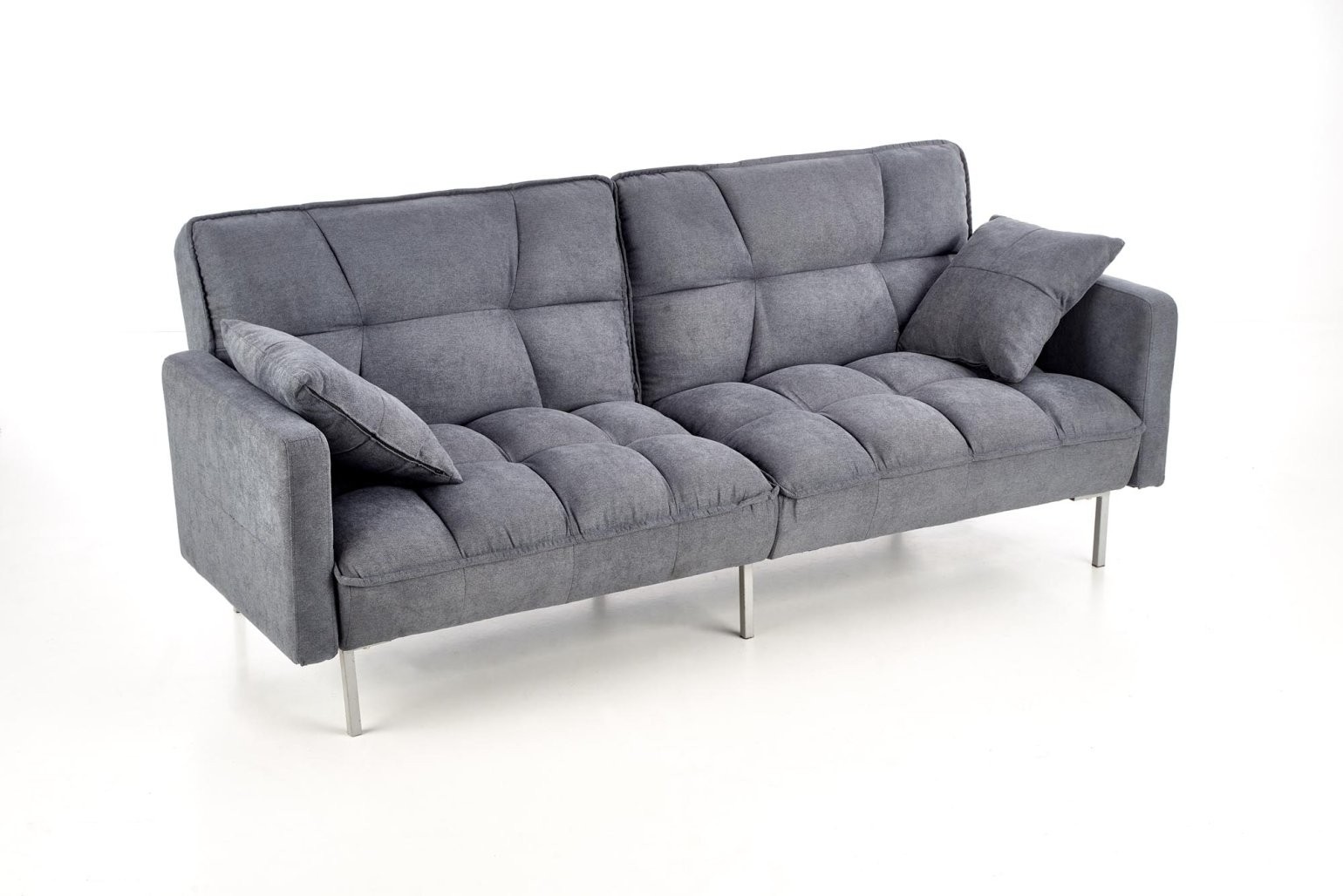 Kavč Broen je klasičen in funkcionalen siva garnitura, ki se preprosto spremeni v udobno ležišče. Trden kovinski okvir in kromirane noge zagotavljajo stabilnost in eleganco.