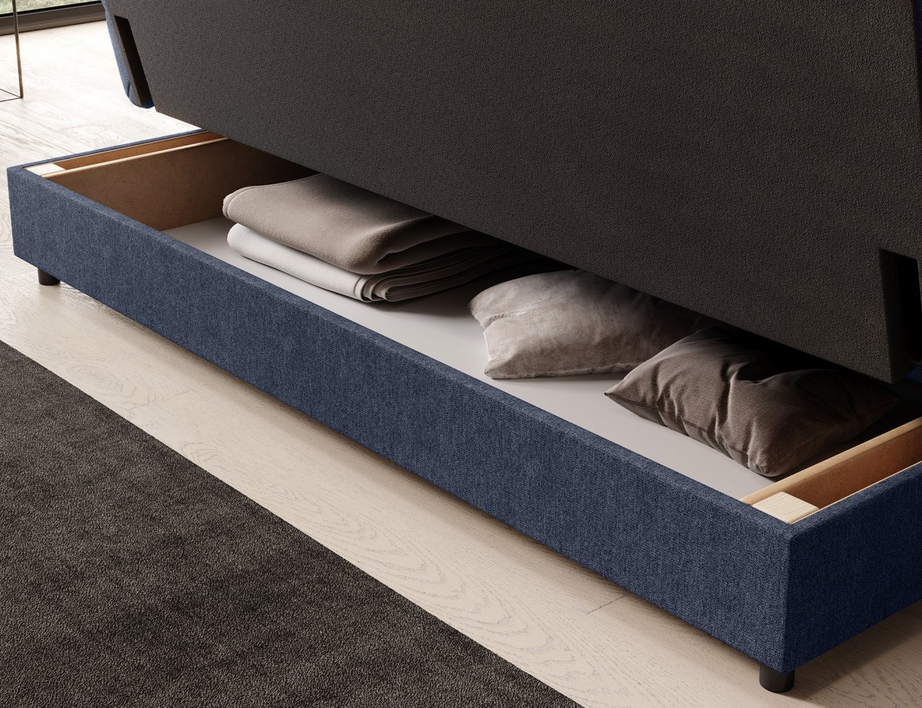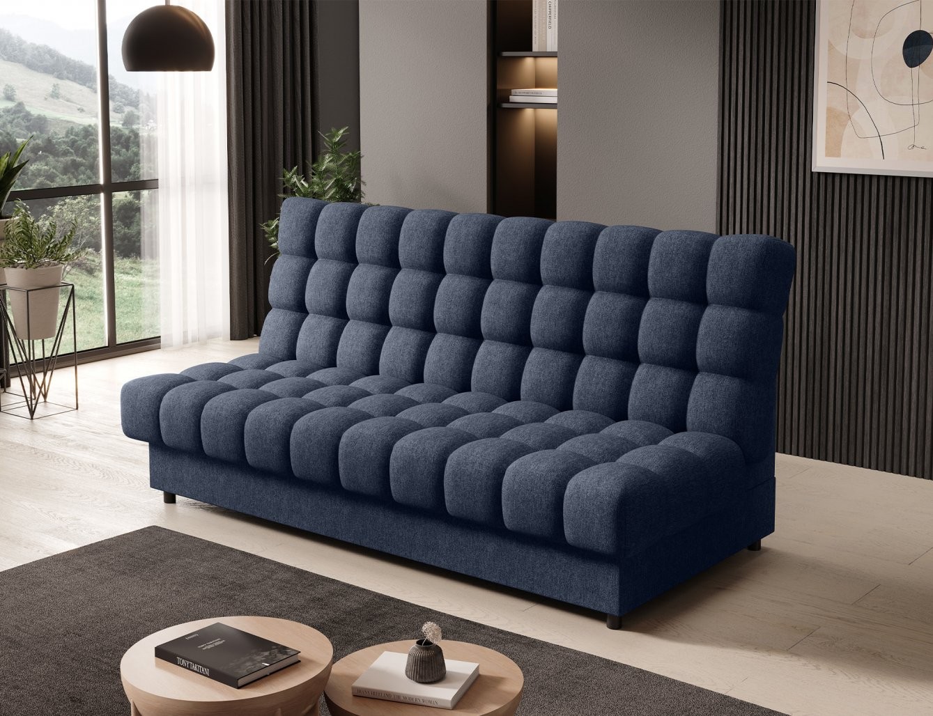 Zahvaljujoč mehanizmu Klick-Klack lahko Kavč Clareta v samo enem gibu preoblikujete v udobno ležišče. To je idealna rešitev za goste ali kadar potrebujete dodaten prostor za spanje. Poleg tega vam predal za shranjevanje posteljnine pomaga ohranjati red v dnevni sobi. Črne noge iz trpežne plastike dodajo sodoben pridih, ki odlično dopolnjuje vaš interier, hkrati pa zagotavljajo stabilnost in vzdržljivost.