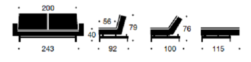 Hrbtna stran je razdeljena na dva dela individualno in nastavljiva v tri položaje: kavč, sprostitev, branje. 3 položaji v hrbtnem delu so zelo enostavni za uporabo in zelo možni in trpežni.