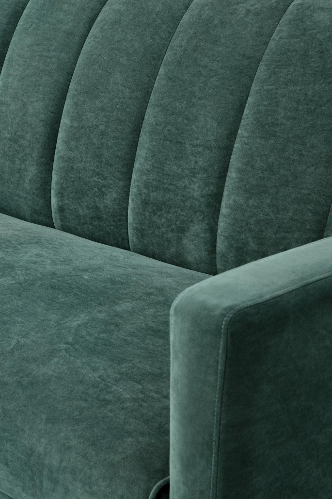 Kavč Malen z žametnim oblazinjenjem v tradicionalnem slogu je idealen za mladinske sobe. Na voljo v temno zeleni in sivi barvi. Zložljiv dizajn omogoča preprosto prilagoditev prostora.