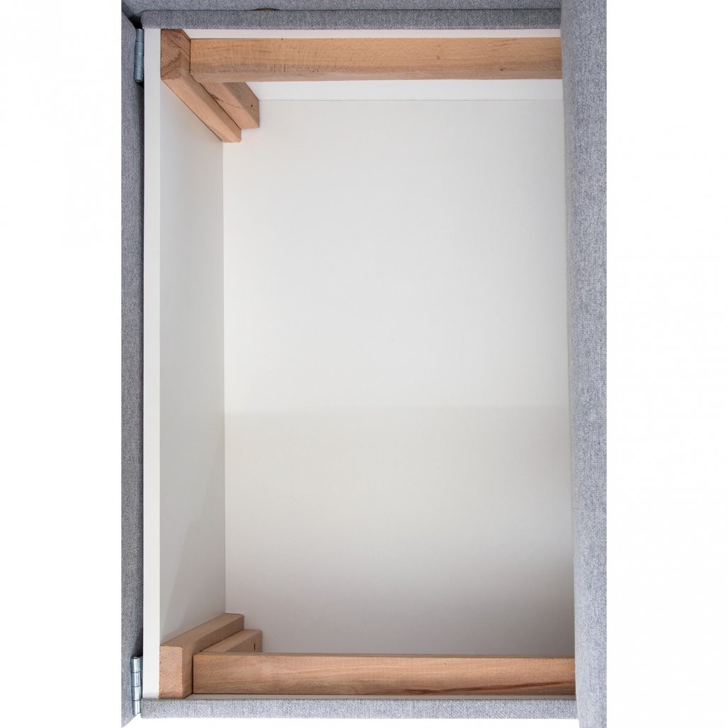 - V celoti je pokrit s kakovostno tkanino sive barve