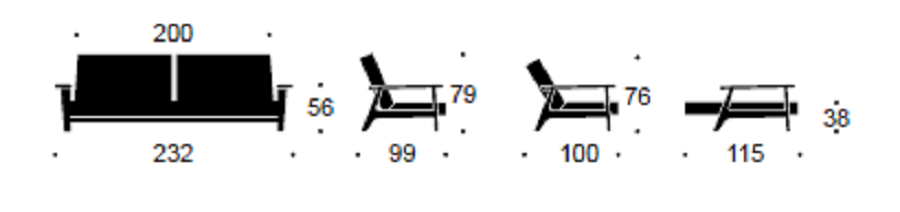 Hrbtna stran je razdeljena na dva dela individualno in nastavljiva v tri položaje: kavč, sprostitev, branje. 3 položaji v hrbtnem delu so zelo enostavni za uporabo in zelo možni in trpežni.