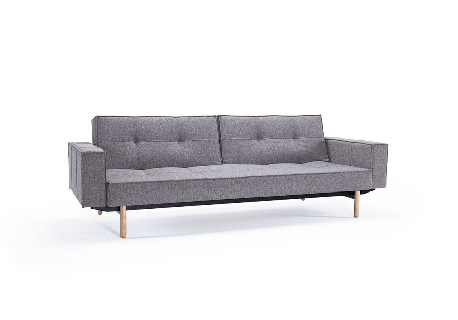 Kavč SPLITBACK SOFA BED z rokonasloni in s svetlo lesenimi nogicami