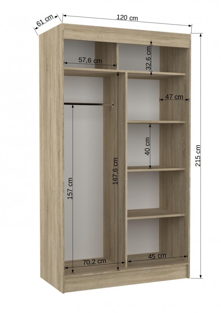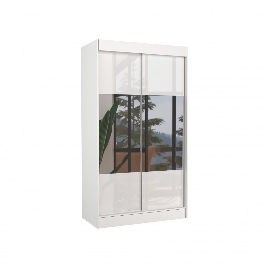Elegantna zrcalna površina in steklo Lacobel dodata prostoru pridih prefinjenosti, medtem ko prostorne police in palici za obešanje omogočajo optimalno shranjevanje vaših oblačil.