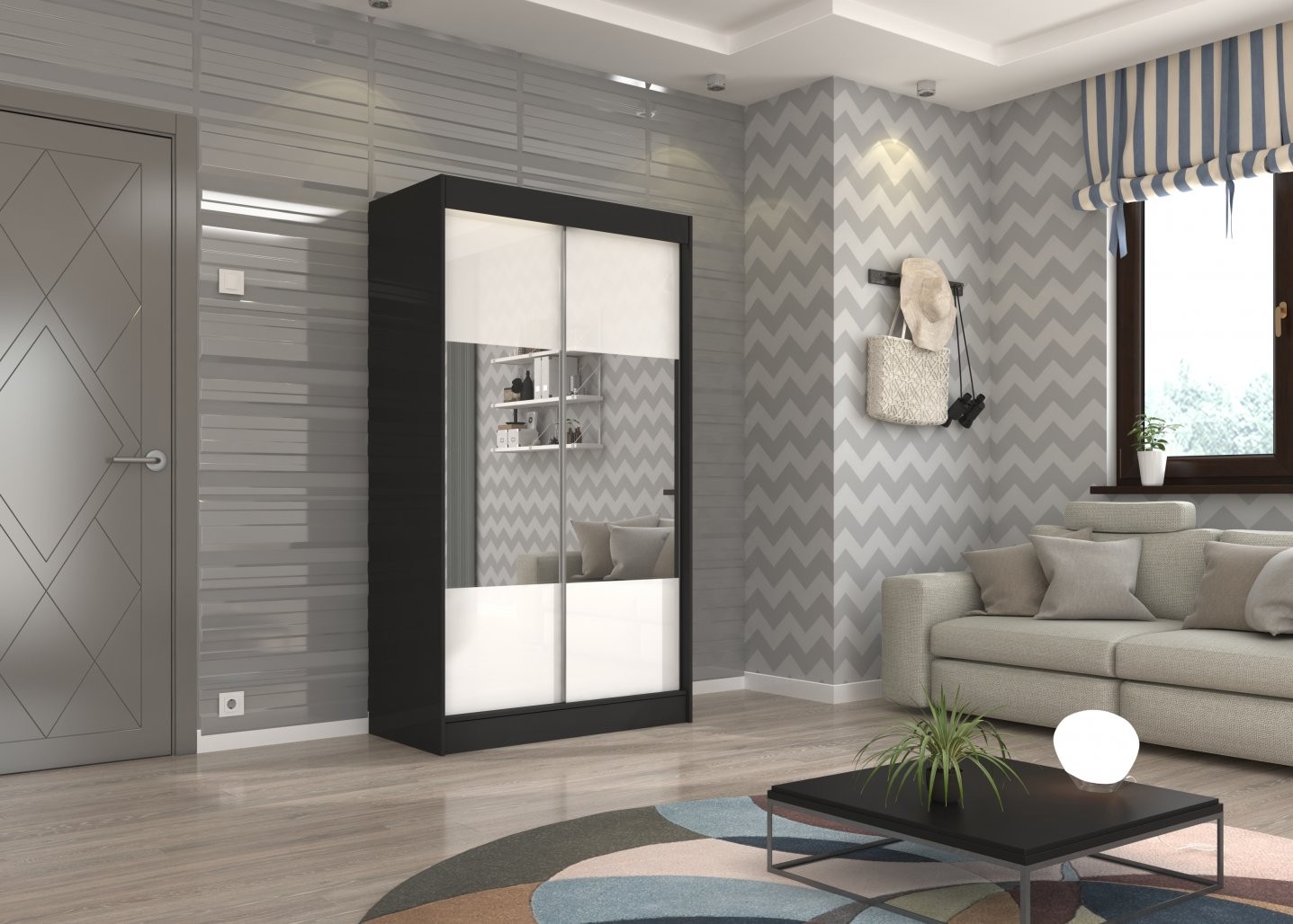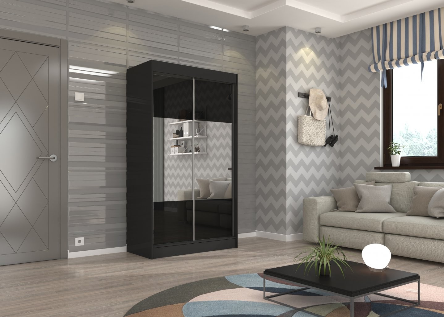 Drsna omara TAMOS z ogledalom in steklom Lacobel 120 cm - ČRNA