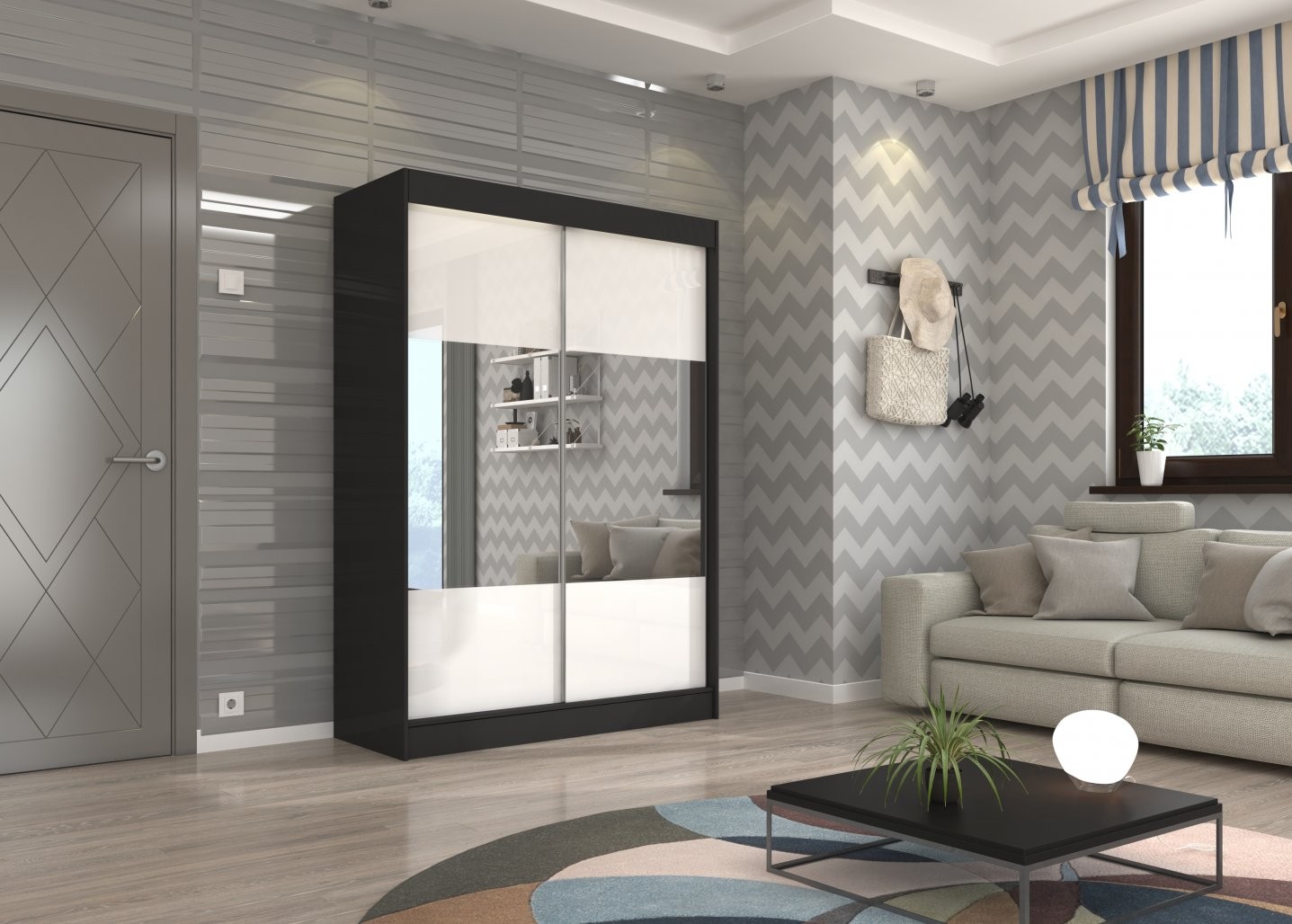 Drsna omara TAMOS z ogledalom in steklom Lacobel 150 cm - ČRNA