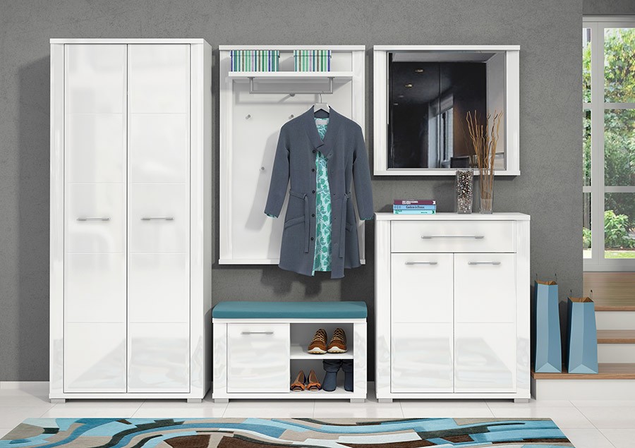 Klop Dana - bela vas bo navdušila s svojim modernim dizajnom. Klop ima dve polici za čevlje in vrata, ki imajo v notranjosti eno polico.