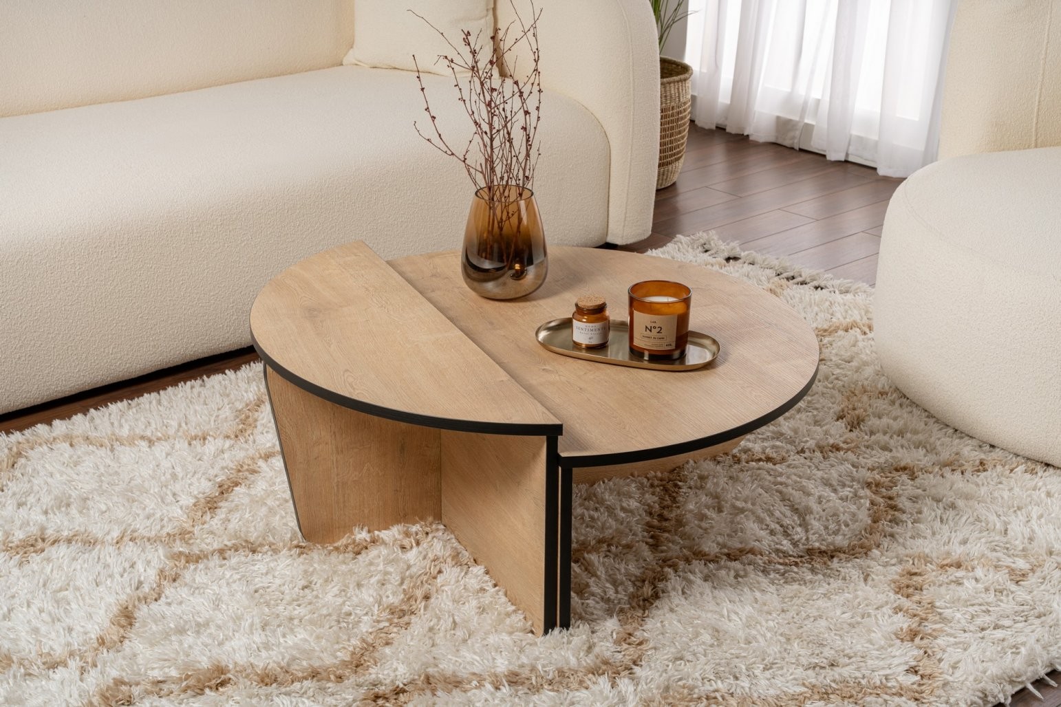 V tem kompletu sta dve različni velikosti, zato lahko mize razporedite v različne konfiguracije, ki ustrezajo vašemu prostoru in potrebam. Uporabite jih skupaj za skladen videz ali pa jih ločite za večjo funkcionalnost v različnih prostorih vašega doma.