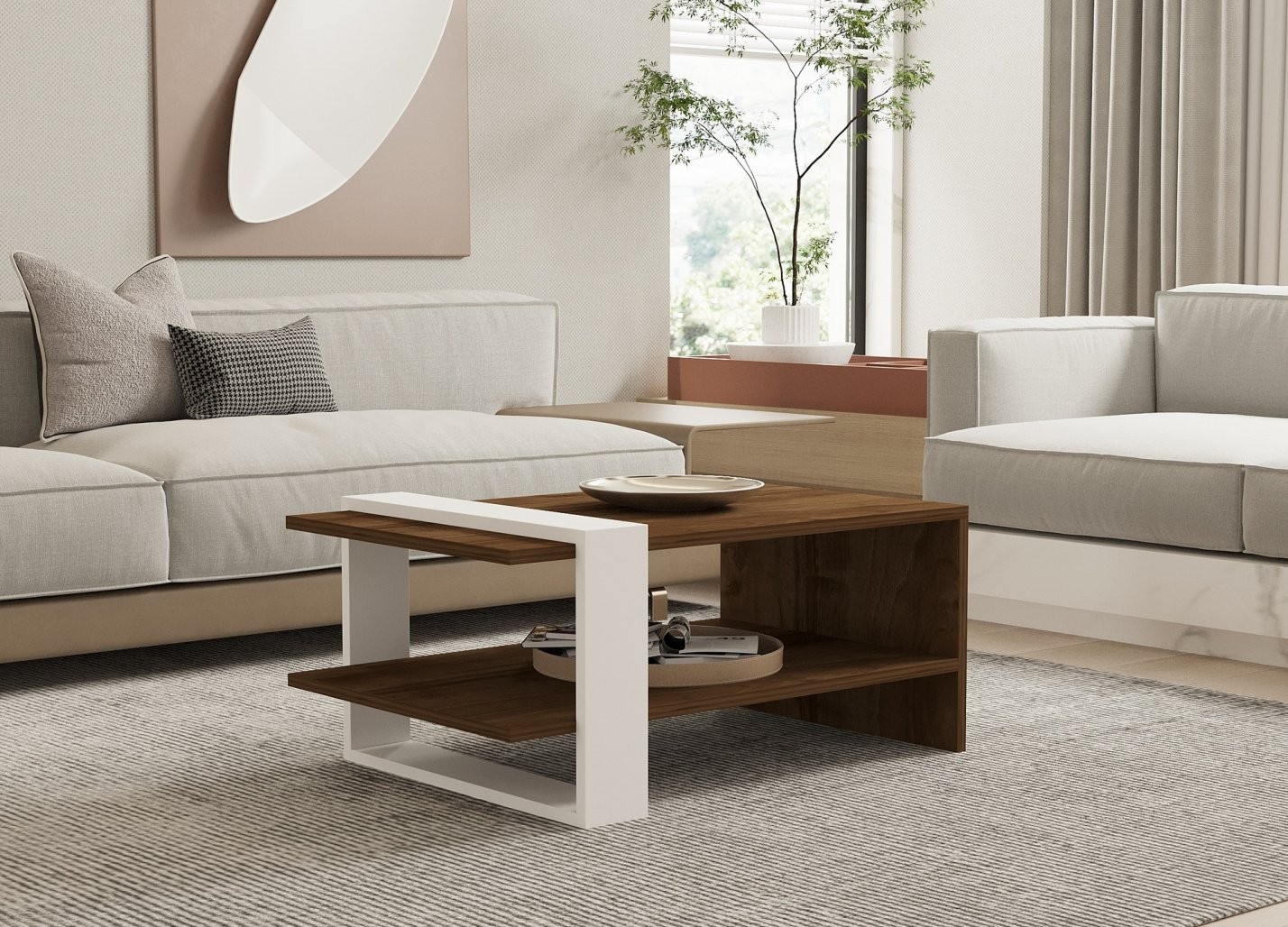 Preoblikujte svoj bivalni prostor z našo dvonadstropno večnamensko mizico iz orehovega lesa in bele barve. Zaradi elegantne oblike, praktičnega shranjevanja in visokokakovostnih materialov je nepogrešljiv dodatek za vsak dom. Naročite zdaj in izkusite popolno kombinacijo sloga in funkcionalnosti!