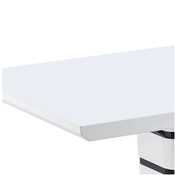 Modernizirajte svojo dnevno sobo s futuristično klubsko mizo ADAN, ki se ponaša z elegantnim videzom in mogočnim stebrom. Miza je na voljo v kombinaciji bele barve v visokem sijaju in črnih okrasnih črt na stebru, tako da se enostavno kombinira z drugimi barvami. Plošča nudi dovolj prostora za odlaganje vseh vaših najljubših revij, časopisov, prigrizkov in pijače.