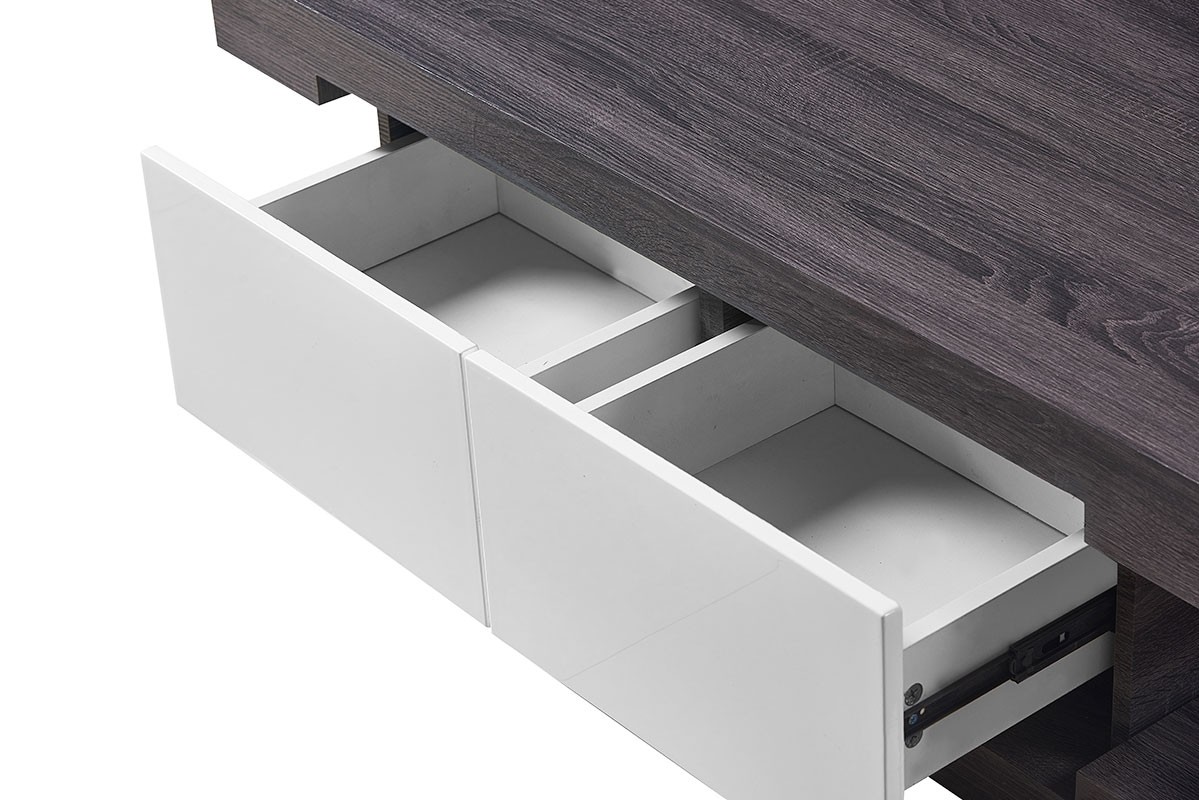 Elegantna in moderna miza GIRONA je na voljo v kombinaciji sive in bele barve. Barvi in kombinacija modernega sloga bosta poživeli vaš dnevni prostor. Miza ima dva velika shranjevalna predala, kamor lahko shranite vse stvari katere želite imeti pri roki, kadar se sproščate v dnevni sobi. Miza je narejena iz kakovostnega MDF materiala, njena maksimalna obremenitev pa znaša 50 kg.