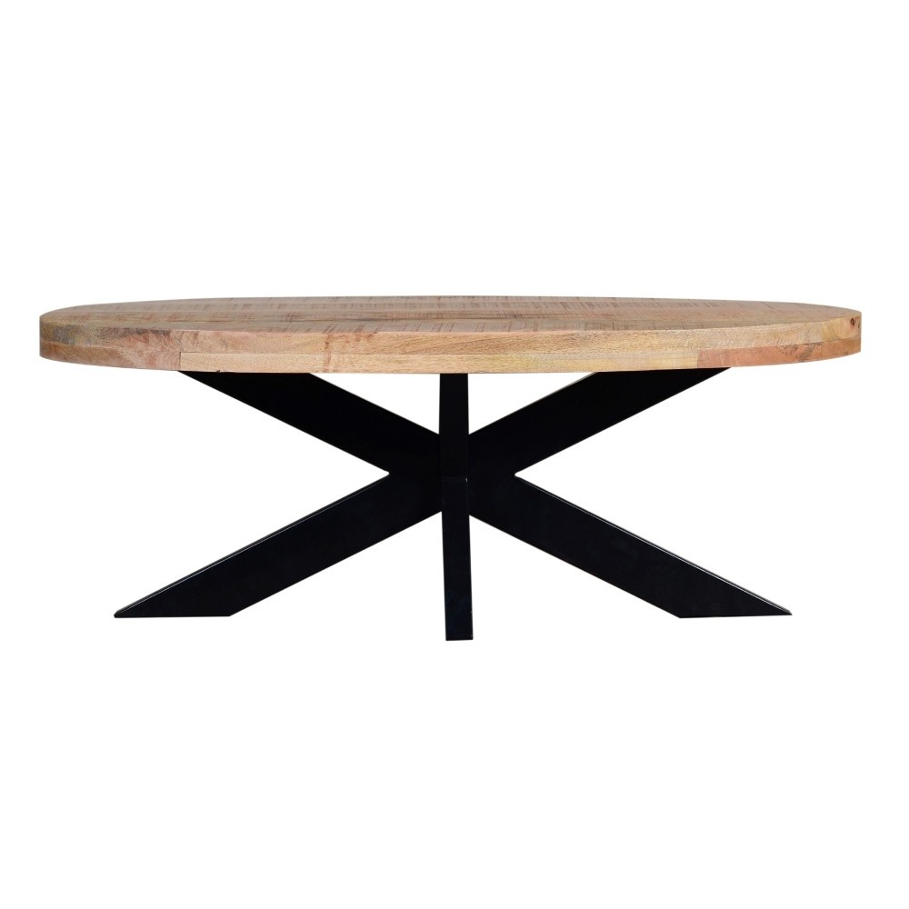 Klubska miza KALA ovalne oblike se bo odlično podala v vsako dnevno sobo, saj je robustnega dizajna in nevtralnih barv. Plošča mize je narejena iz dveh lepljenih plasti masivne akacije skupne debeline 5cm, ter lakirana z lakom na vodni snovi. Črne kovinske nogice velikosti 4x8cm pa poskrbijo za industrijski moderen videz, ter nosilnost mize do kar 75kg. Privoščite si in uživajte v novem centralnem elementu vaše dnevne sobe!