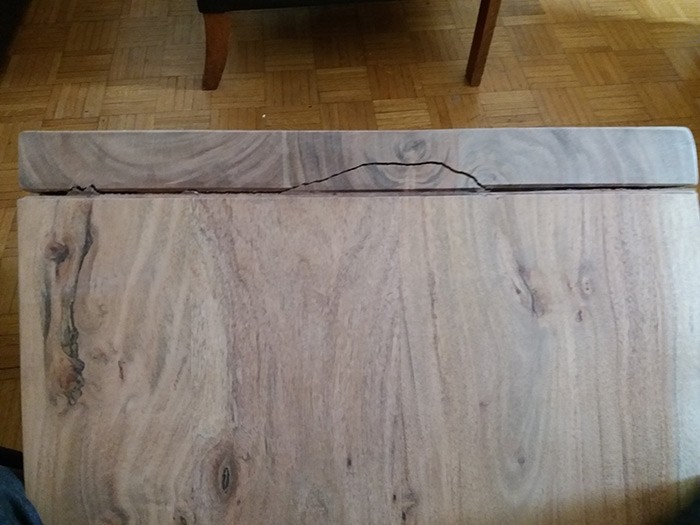 Mizica ima na vogalu plošče razpoko, ki je nastala od transporta.