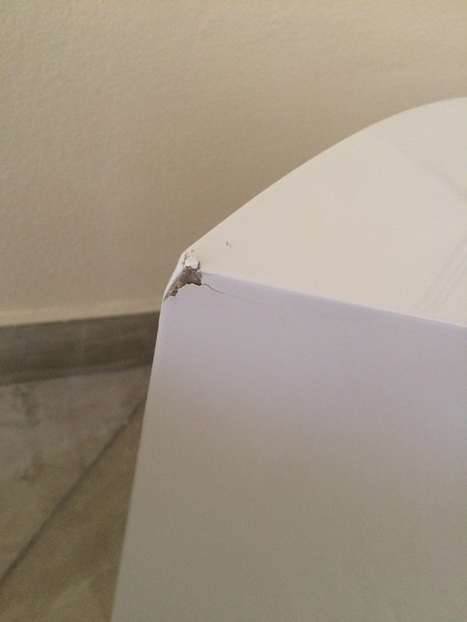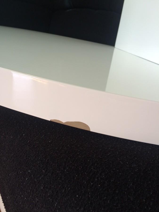 Klubska miza TINKARA je nekoliko poškodovana. Slike poškodb so priložene.