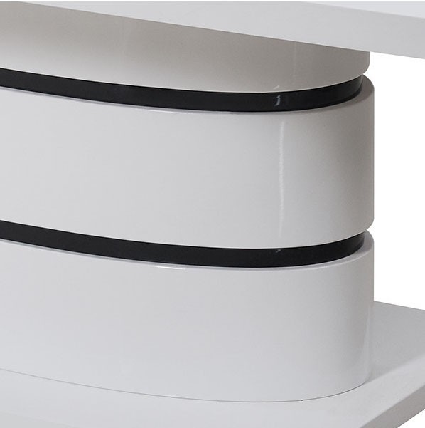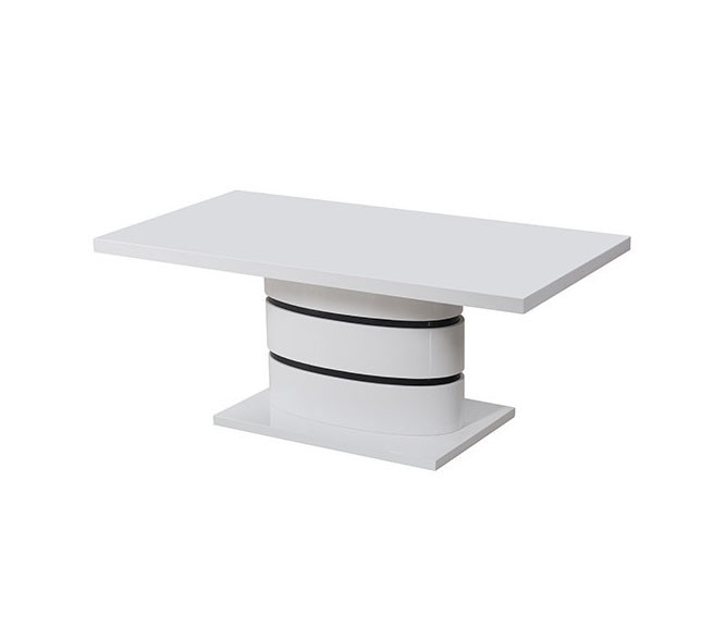 Futurističen videz in elegantna bela barva v visokem sijaju sta razloga zakaj je klubska miza ZARA odlična izbira za vaše stanovanje. Narejena je iz kvalitetnega in odpornega MDF-a z vodoravnimi črnimi črtami na stebru, tako da sta kakovost in moderni dizajn zagotovljena. Plošča vam nudi vel kot dovolj prostora za vse vaše aktualne revije in časopise, ter za najljubšo pijačo in prigrizek.