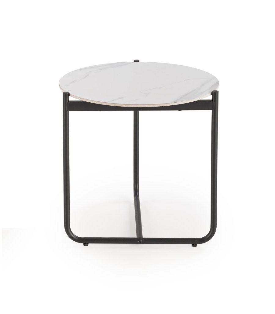 Klubska mizica Alaris združuje eleganco belega marmorja in robustnost črnega kovinskega okvirja. Idealna je za moderne domove, kjer želite poudariti prefinjen stil z minimalističnim pridihom.