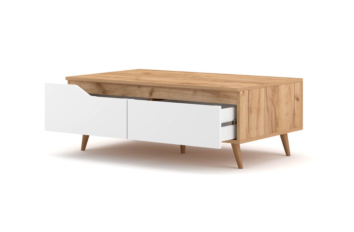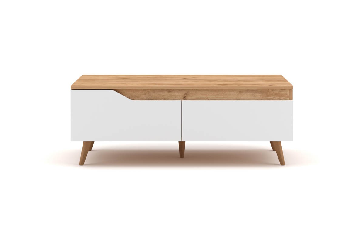 Elegantna skandinavska klubska mizica BENGAZI je popolna kombinacija funkcionalnosti in stila. Mizica se ponaša z dvema prostornima predaloma, ki ponujata praktično shranjevanje za vaše dnevne potrebščine. Njene nogice dvignejo komodo od tal, kar olajša čiščenje pod njo.