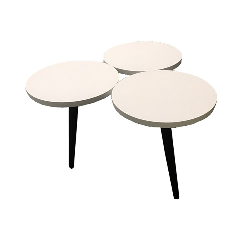 KLUBSKA MIZA CIRCLE je narejena iz masivnega bukovega lesa. Na voljo je v črno-beli barvni kombinaciji. Mizica je zanimivega, modernega dizajna in se bo odlično podala v vašo dnevno sobo, ter ji dodala kanček prefinjenosti in elegance. Zgoraj ima tri okrogle plošče, spodaj pa tri noge.