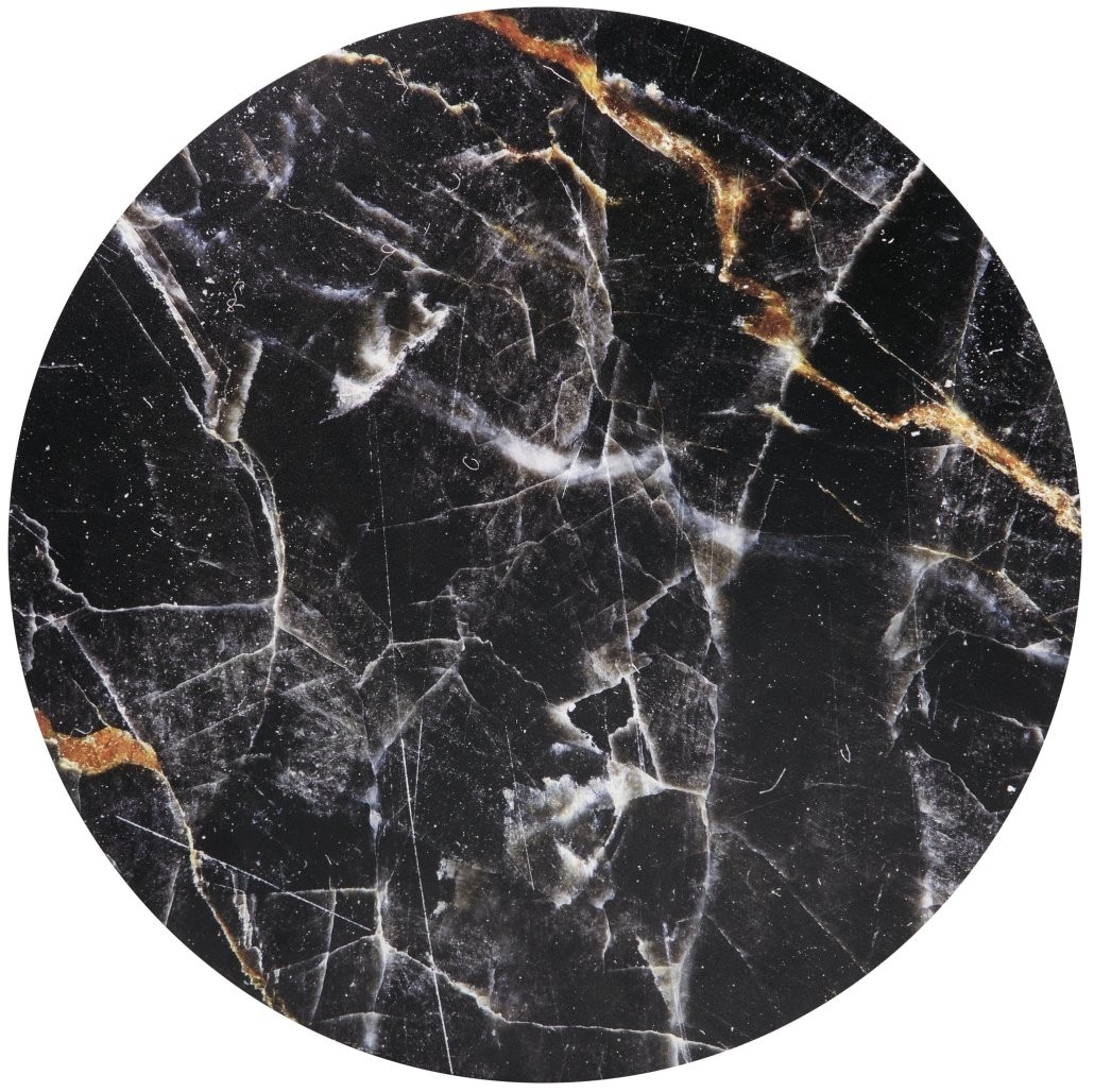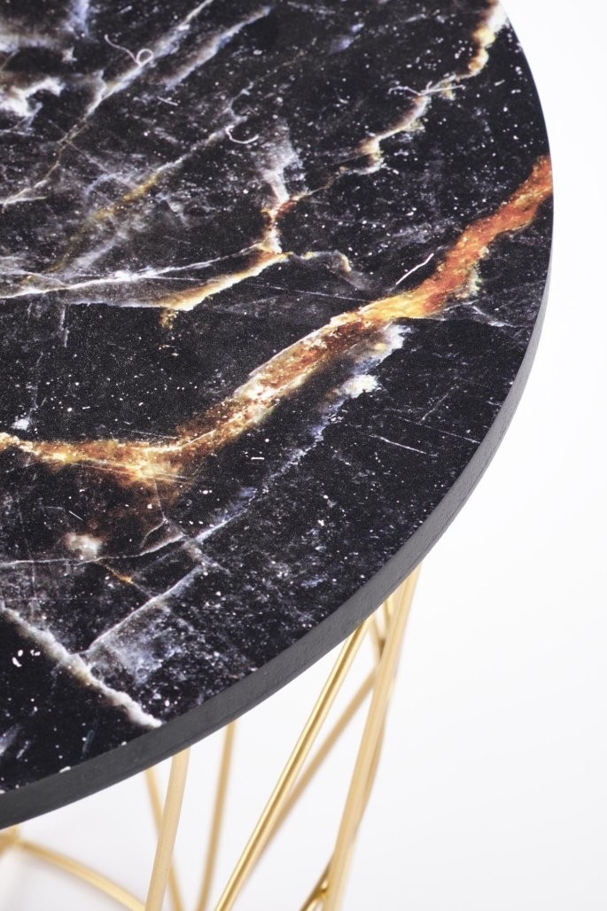 Klubska mizica Coran s črno marmorno ploščo in zlatim okvirjem je elegantna izbira za sodobne in prestižne interierje.