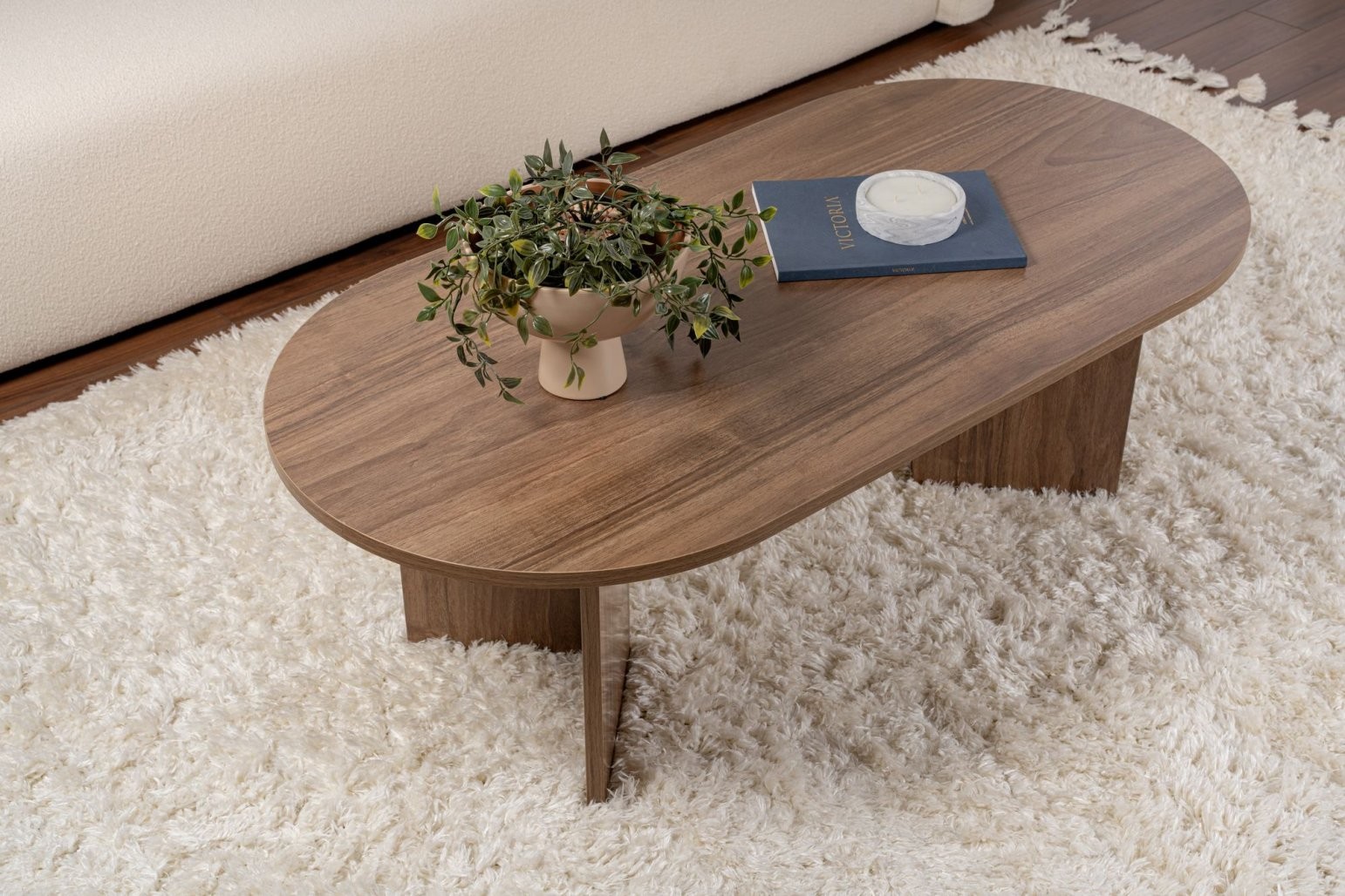 100 -odstotna plošča z melaminskimi delci, uporabljena na tej kavni mizi, zagotavlja gladek in trpežen zaključek, ki ga je enostavno očistiti in vzdrževati. 18 -milimetrska debelina dodaja svojo robustnost, zaradi česar je zanesljiv kos pohištva za vaš dom. Barva orehov doda pridih topline in prefinjenosti, zaradi česar je vsestranski kos, ki dopolnjuje kateri koli slog dekorja.