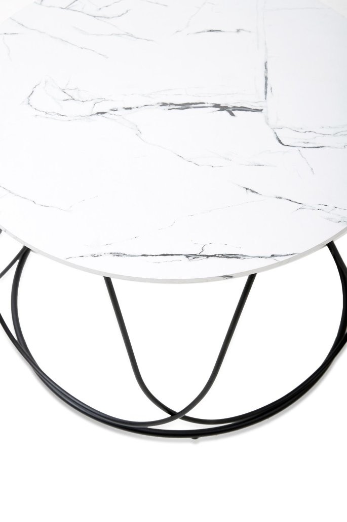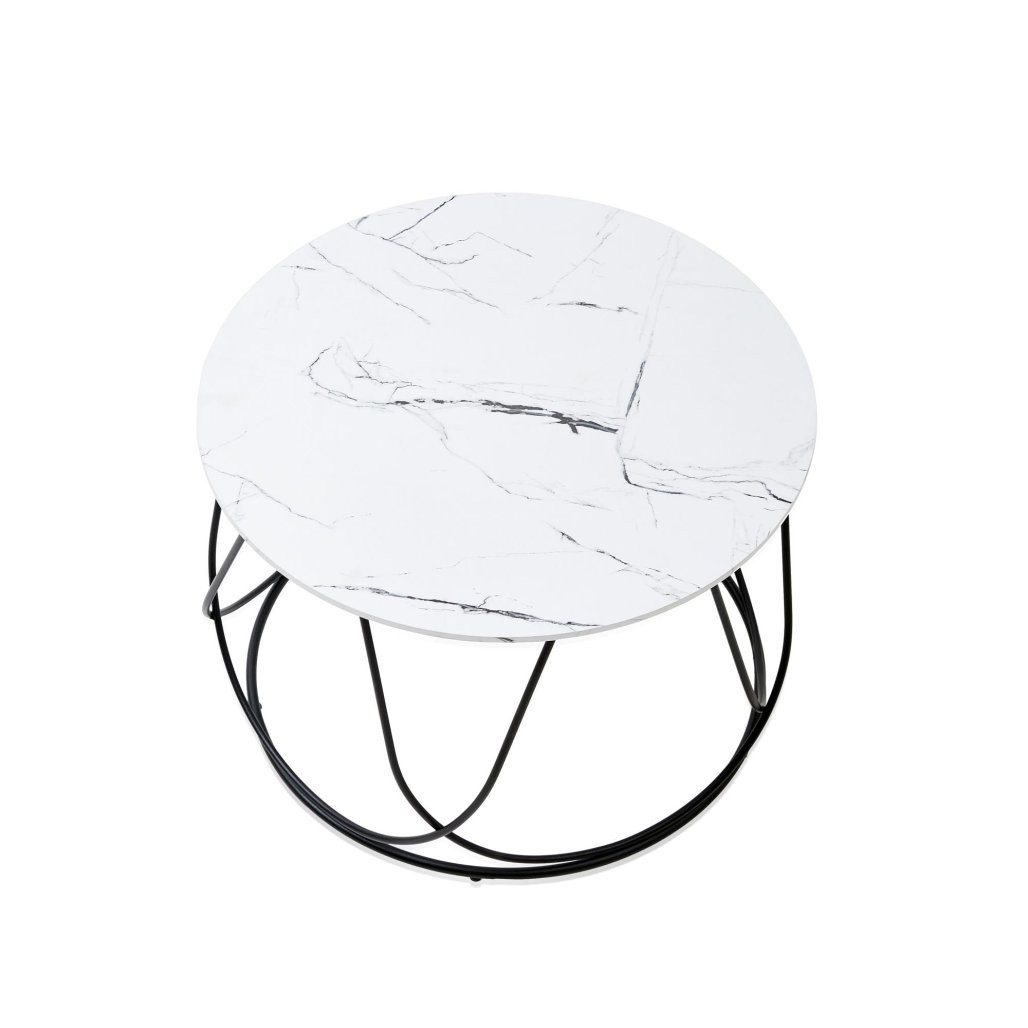 Klubska mizica Daron je moderna, kompaktna miza v beli ali orehovi barvi. Narejena iz MDF-ja s prašnim premazom, z marmorno površino premera 60 cm, primerna za dnevno sobo z elegantnim pridihom.