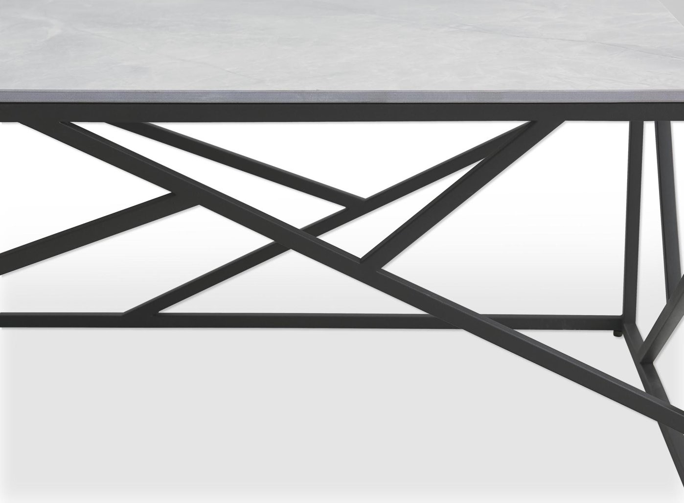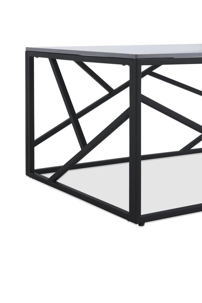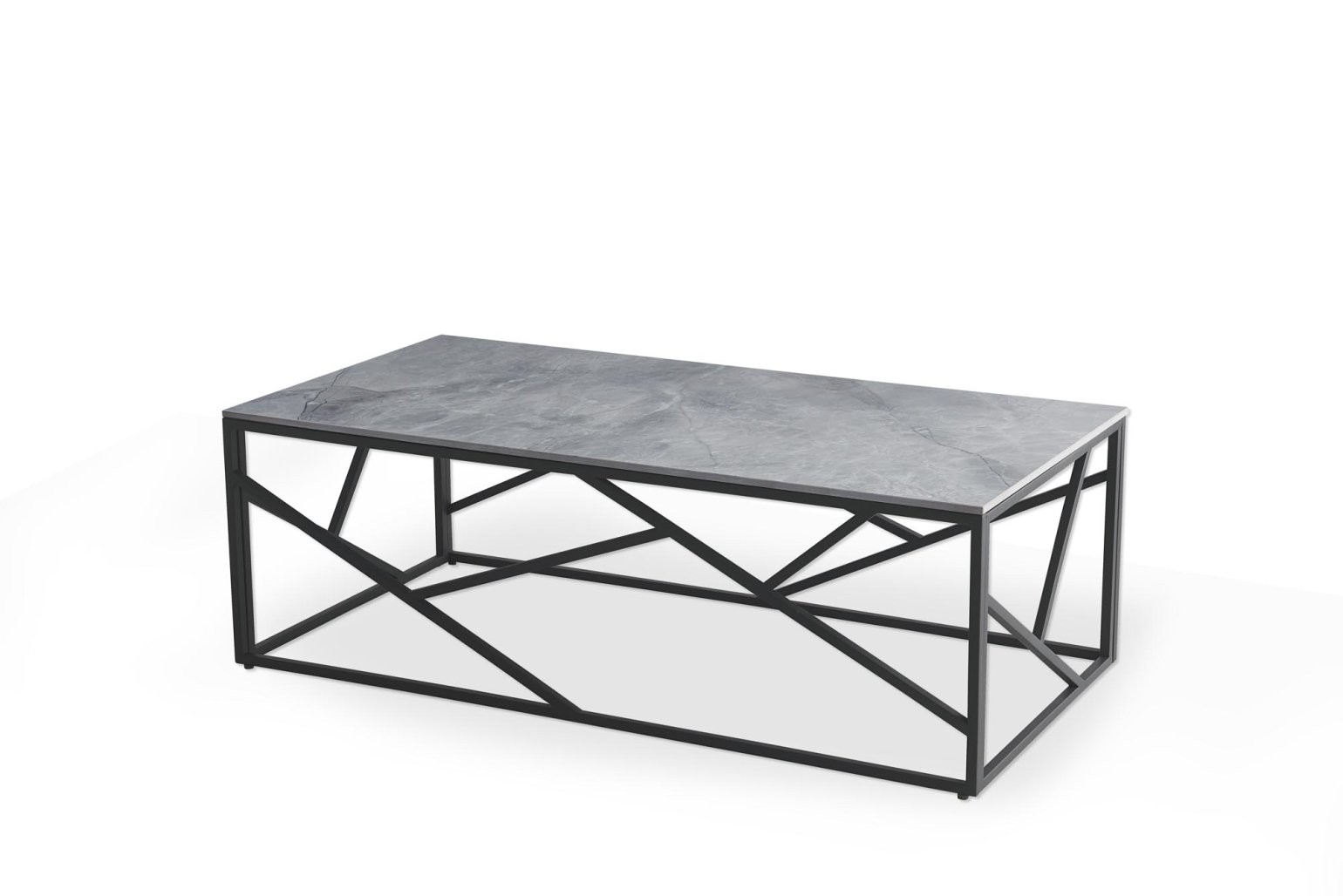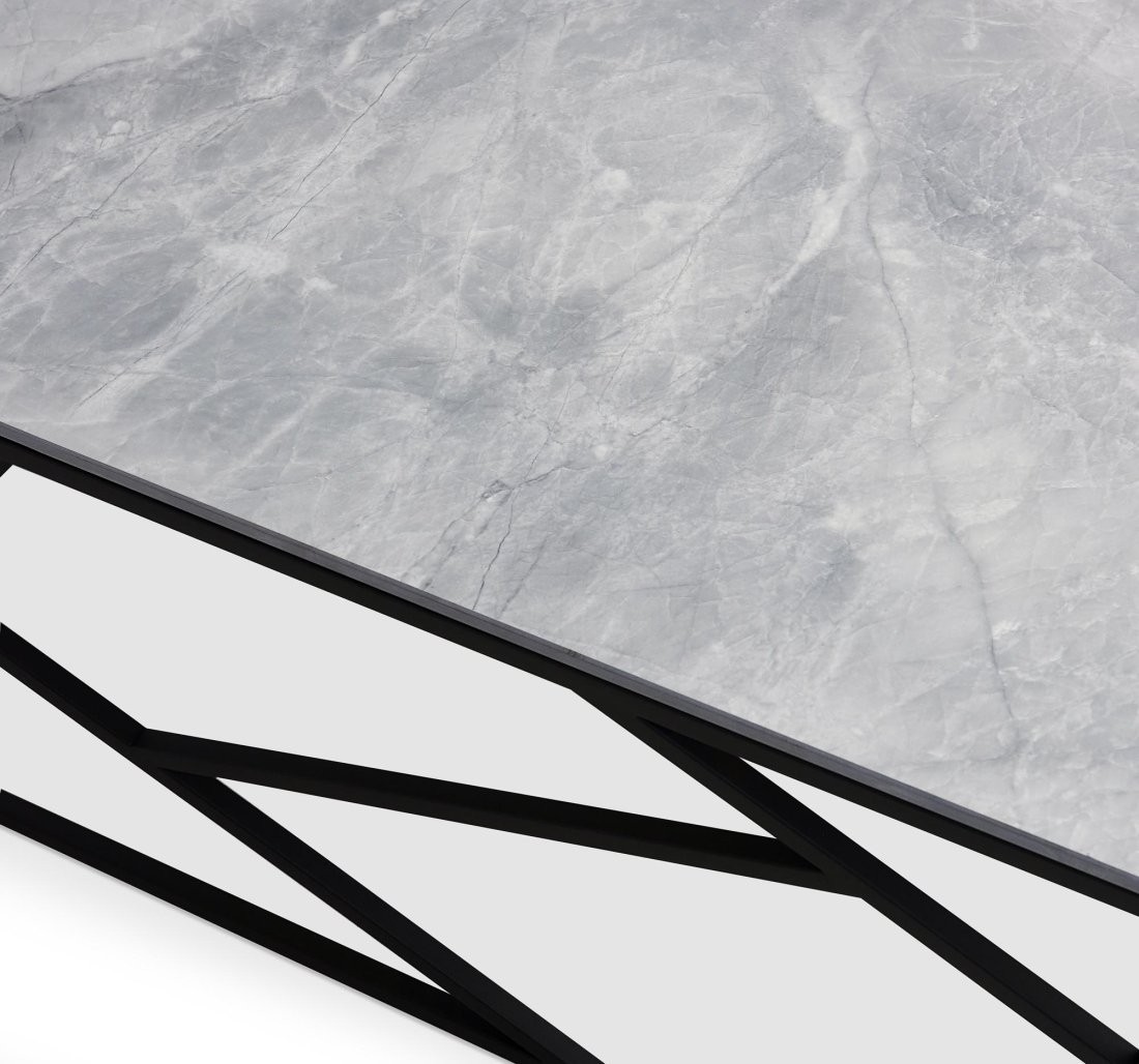 Klubska mizica Elnar s sivo marmorno površino iz sintranega kamna in črnim okvirjem iz jekla v prahu prinaša industrijski estetiko v vsak dom. Dimenzije 120 x 60 x 45 cm ustvarjajo eleganten in praktičen prostor za odlaganje.