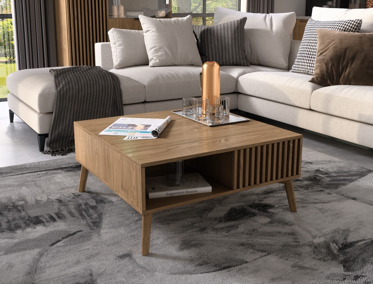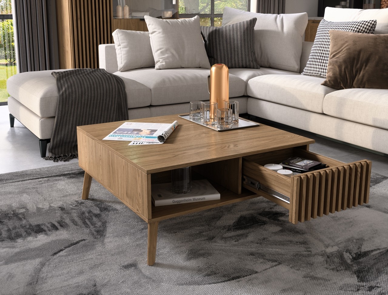 Klubska mizica Entsian je dizajnerski dodatek k vaši notranjosti, ki očara s svojo preprostostjo in naravni videzom. Klubska mizica vsebuje predal in polico kamor lahko odložite vaše knjige, družabne igre ali pa jo uporabite za prigrizke in pijačo med gledanjem televizije. Privoščite si klubsko mizico, ki bo očarala vas in vaše prijatelje. Klubska mizica ima plastične nogice.