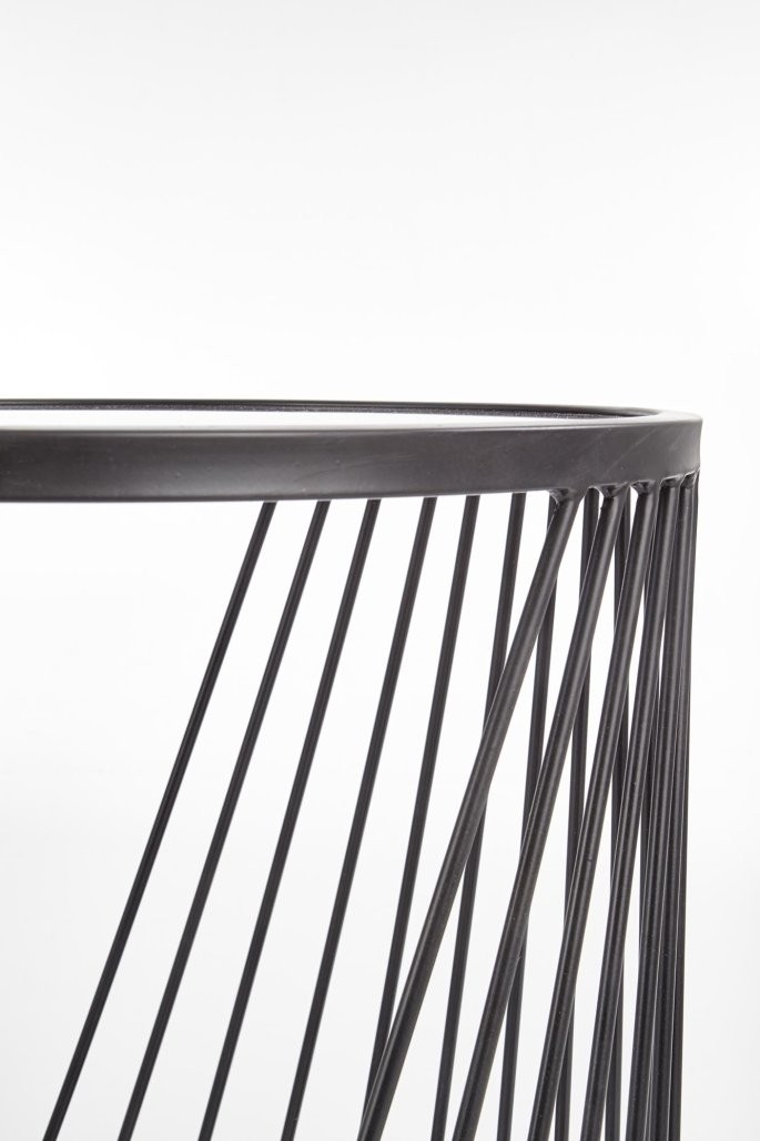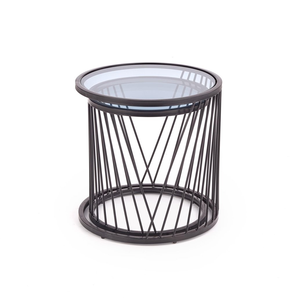 Klubska mizica Galin v slogu združuje stekleno dimljeno površino in črn kovinski okvir. Kompaktna in stilska rešitev, ki v prostor prinaša industrijski pridih in praktično uporabo.