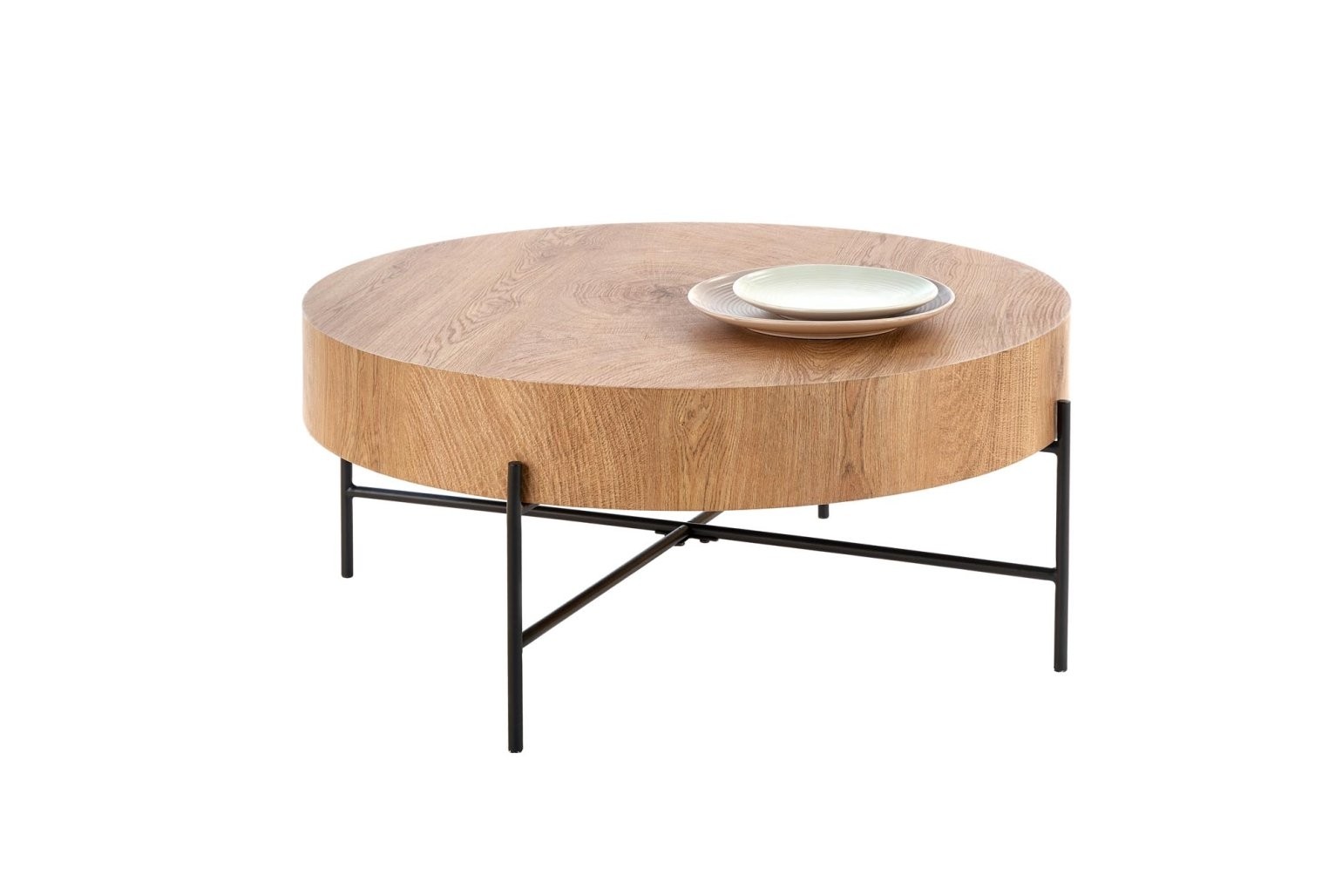 Klubska mizica Herin iz MDF-ja z naravnim hrastovim videzom in črnim kovinskim ogrodjem prinaša rustikalno eleganco v prostor, primerna za sodoben dnevni prostor.