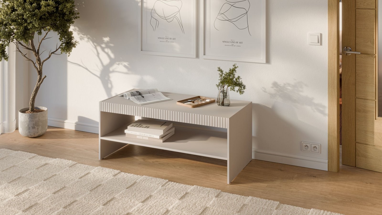 Izdelana je iz kombinacije laminirane iverne plošče, laminiranega MDF-a in prašno lakiranega jekla, kar zagotavlja visoko trpežnost in stabilnost. Laminirane površine so enostavne za čiščenje in odporne na madeže, medtem ko jeklena konstrukcija nudi robustno in dolgo življenjsko dobo. Klubska mizica Imral je idealna za shranjevanje revij, daljinskih upravljalnikov ali preprosto za odlaganje skodelice kave.