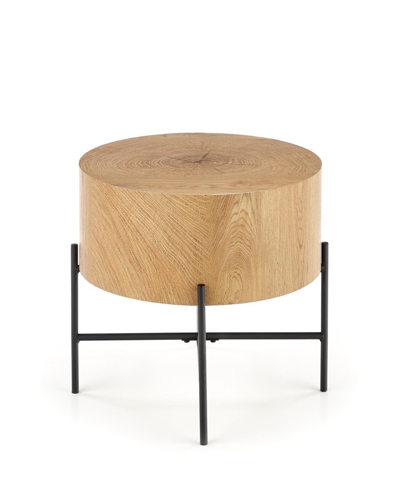 Klubska mizica Irena v skandinavskem slogu z MDF površino v hrastovem videzu in kovinskim črnim ogrodjem se odlično prilega različnim prostorom, tudi kot manjša stranska mizica.