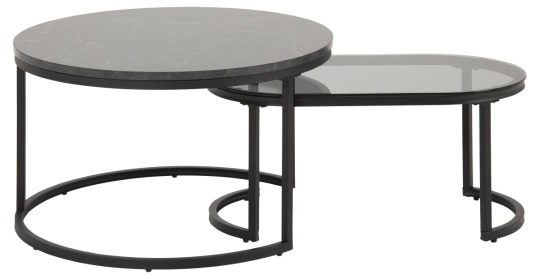 Oglejte si ta industrijski set klubskih mizic JEROME. Uporaba dveh različnih materialov za površini mizic naredi ta kos izjemno opazen. Je popolna kombinacija videza marmorja in dimljenega stekla, ki vas bo navdušil. Prekrivajte mizice, da ustvarite dodaten prostor na tleh, ali jih razmaknite, ko imate goste, da na njih postavite kavo in prigrizke.