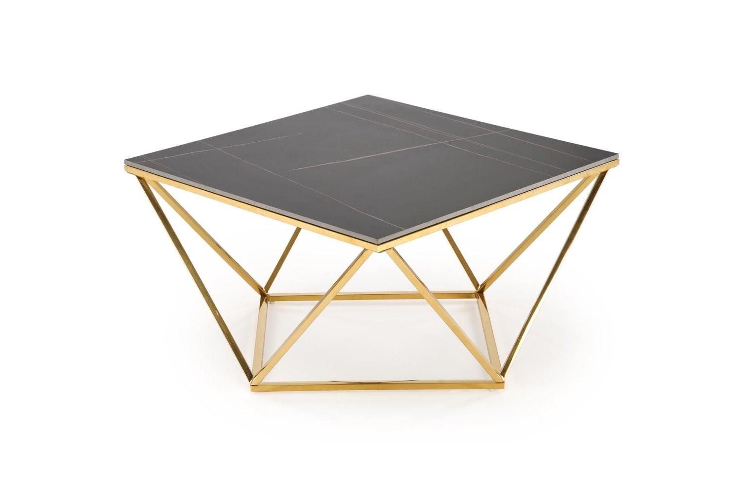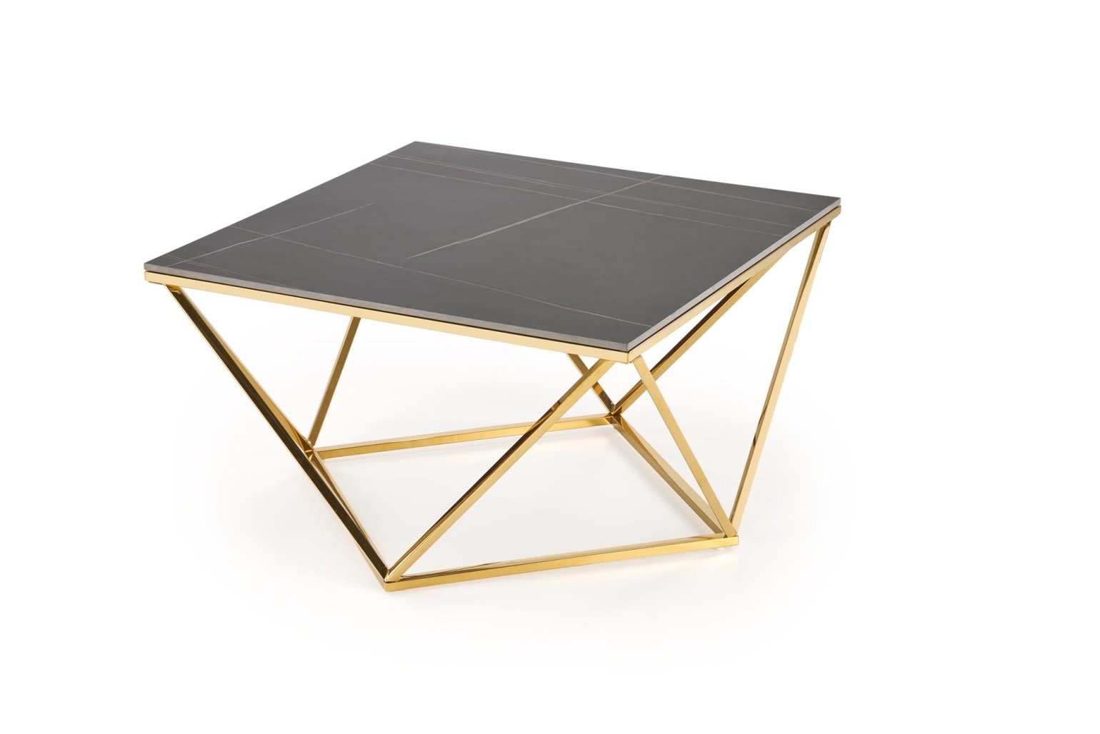 Klubska mizica Karinil s črno marmorno površino in zlatimi kovinskimi detajli. Dopolni vaš dom z modernim in klasičnim slogom ter elegantno kvadratno obliko.