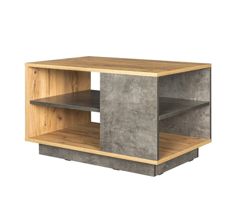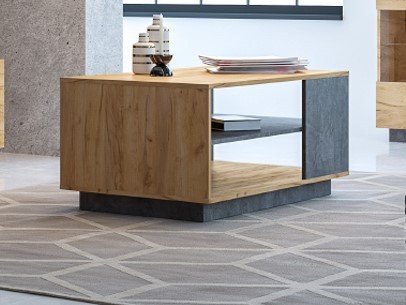 Klubska mizica KIKO je na voljo v moderni barvni kombinaciji temno sive barve v videzu betona in hrasta, ki ji nudita imenitni industrijski videz. Mizica ima tri police, na katere lahko odložite razne revije in časopise, knjige za goste, daljince in ostale poljubne predmete.