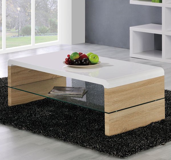Klubska mizica KONTEX je simpatična klubska mizica, ki bo zagotovo popestrila vsak dnevni prostor. Izdelana je v kombinaciji bele barve visokega sijaja in sonoma hrasta. Spodnja prozorna kaljena steklena polička nudi dodaten prostor za odlaganje.