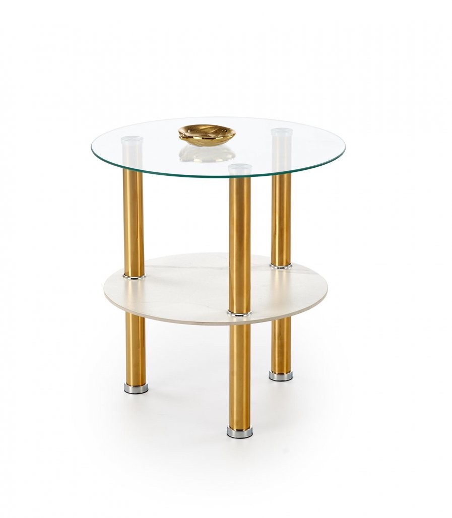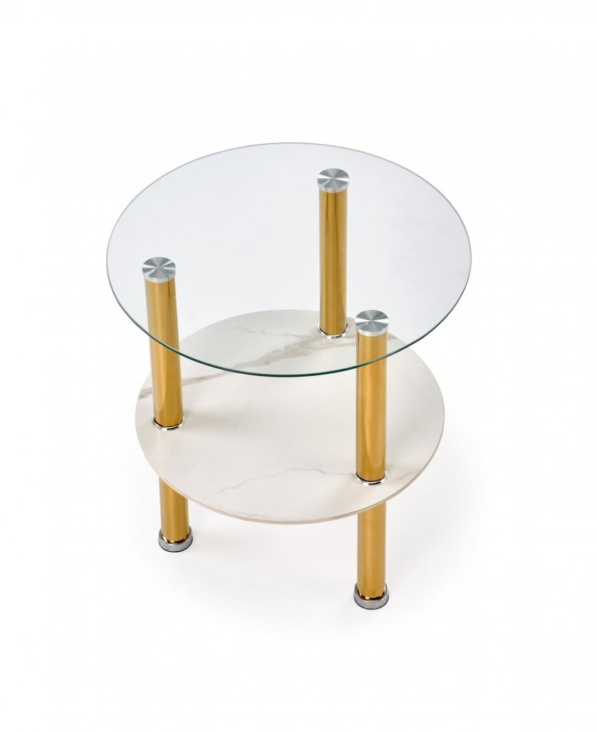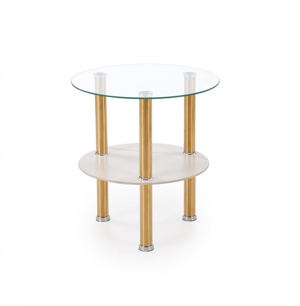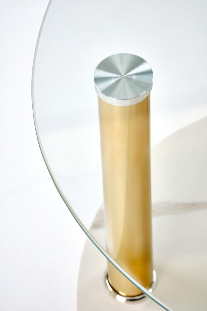 Klubska mizica Marol S je izdelana iz vrhunskih materialov, ki zagotavljajo trpežnost in dolgo življenjsko dobo. Kombinacija prozornega stekla in kromiranega jekla ustvarja moderni videz, medtem ko zaključek v beli marmorni barvi z zlatimi detajli dodaja razkošen in prefinjen občutek. Mizica ni le vizualno privlačna, temveč tudi izjemno praktična, saj je njena površina enostavna za čiščenje in vzdrževanje, kar omogoča, da ohrani svoj sijaj ves čas uporabe.