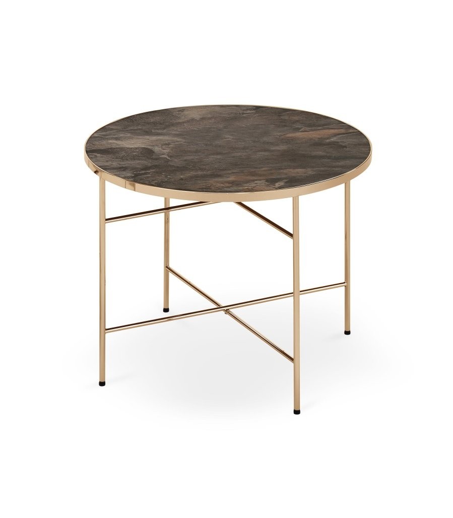 Klubska mizica Pelon prinaša prestižen pridih s črno marmornato ploščo in okvirjem v barvi šampanjca. Kovinski okvir iz kromiranega jekla poskrbi za stabilnost in eleganco, ki ustreza sodobnemu življenjskemu slogu.