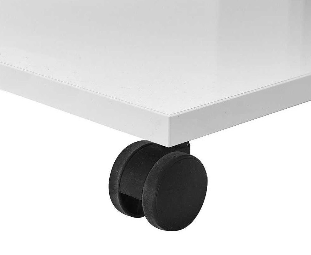 KLUBSKA MIZICA SHANGHAI 3 je minimalistična in zelo praktična klubska miza, ki bo v vaš dom vnesla pridih modernega stila. Zaradi svoje ergonomske oblike in kolesc lahko mizo enostavno premikate in uporabljate v različnih prostorih in za različne namene. Zaradi elegantne bele barve v visokem sijaju se odlično poda v vsak prostor. Narejena je iz oplemenitenih ivernih plošč prevlečenih melaminom ki imajo certifikat E1, kar pomeni da ne vsebujejo rakotvornih snovi in so v skladu z zdravstvenimi normami Evropske unije.
