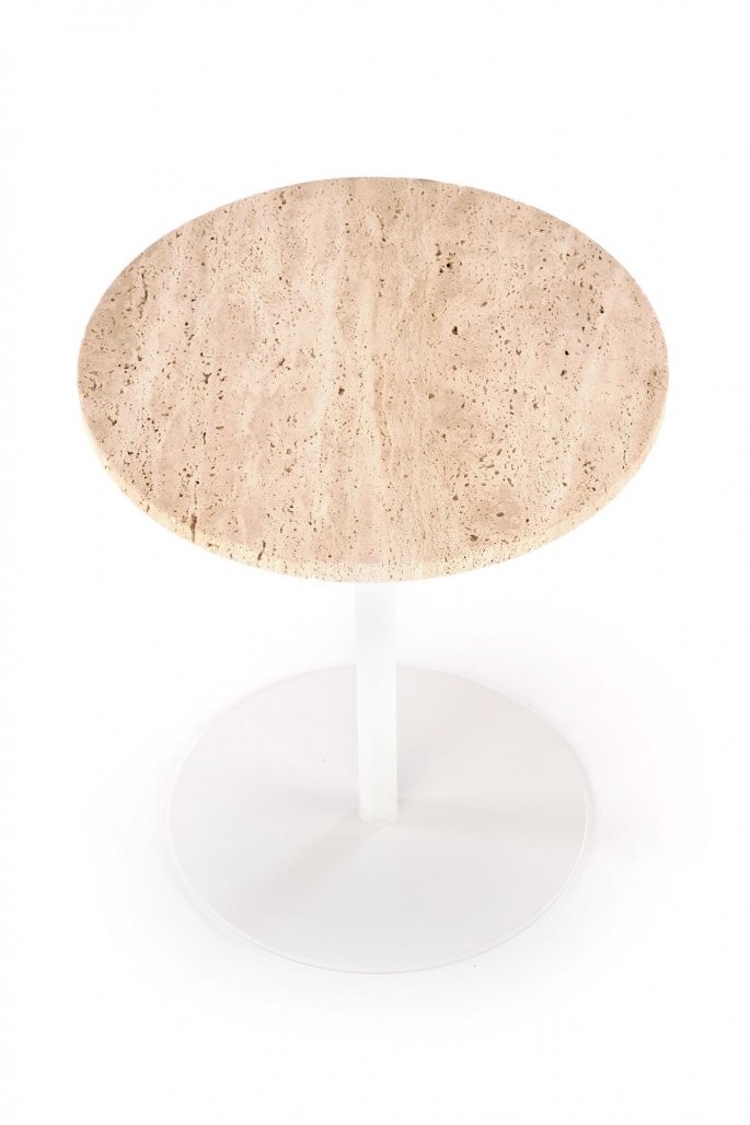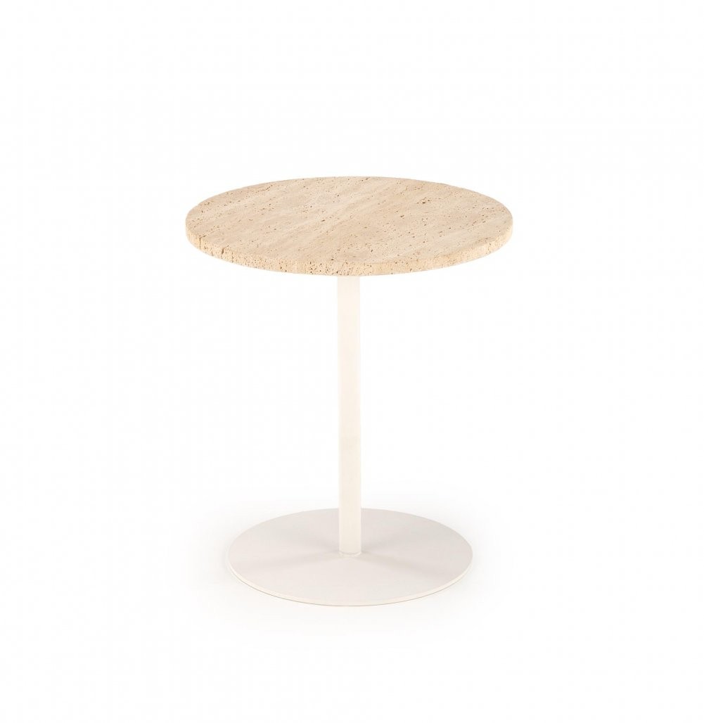 Izdelana je iz kombinacije kamna – travertina in prašno barvanega jekla, kar zagotavlja stabilnost in dolgo življenjsko dobo. Materiali so trpežni in enostavni za vzdrževanje, kar je ključno za vsakodnevno uporabo. Njen unikaten videz travertina bo zagotovo pritegnil poglede.
