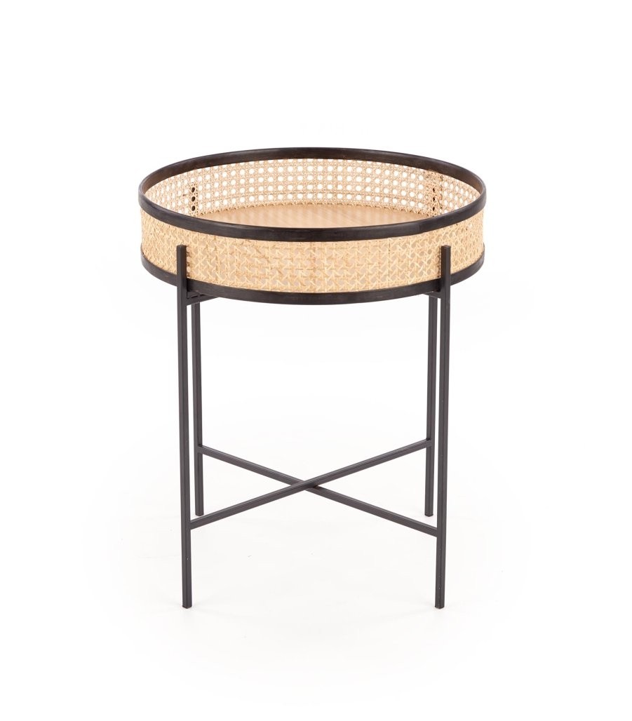 Klubska mizica Tiro iz naravnega ratana in črnega kovinskega okvirja. Skandinavski in boho dizajn združena v lahkem, naravnem kosu, ki prinaša svežino vsakemu ambientu.