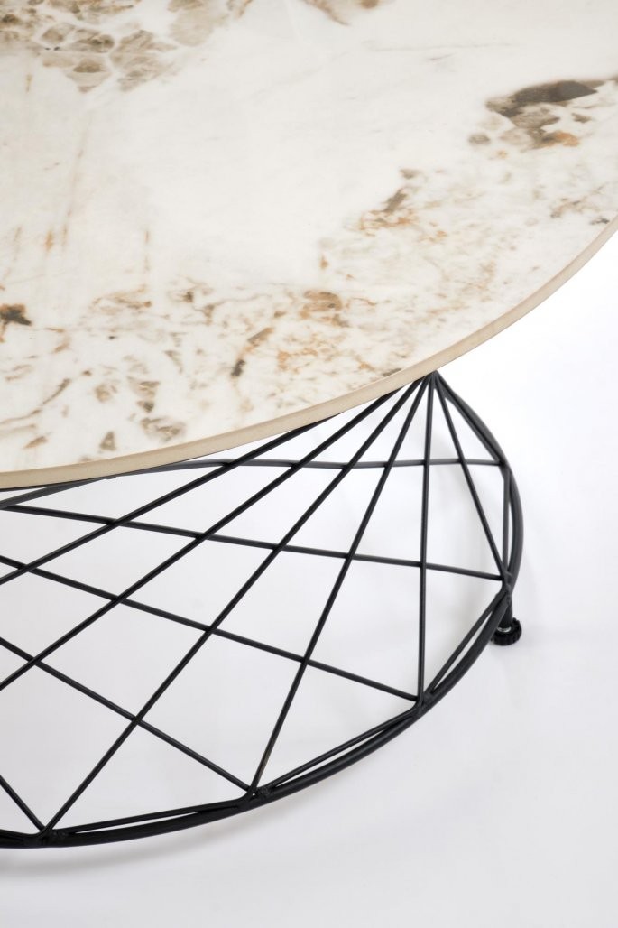 Klubska mizica Tolen je odlična izbira za vse, ki iščejo kombinacijo sodobne estetike in praktičnosti. Ta eleganten kos pohištva je zasnovan tako, da obogati vsak bivalni prostor, saj združuje prefinjen videz in vzdržljive materiale. Izdelana je iz sintranega kamna in prašno lakiranega jekla, kar zagotavlja dolgotrajno uporabo in enostavno vzdrževanje.