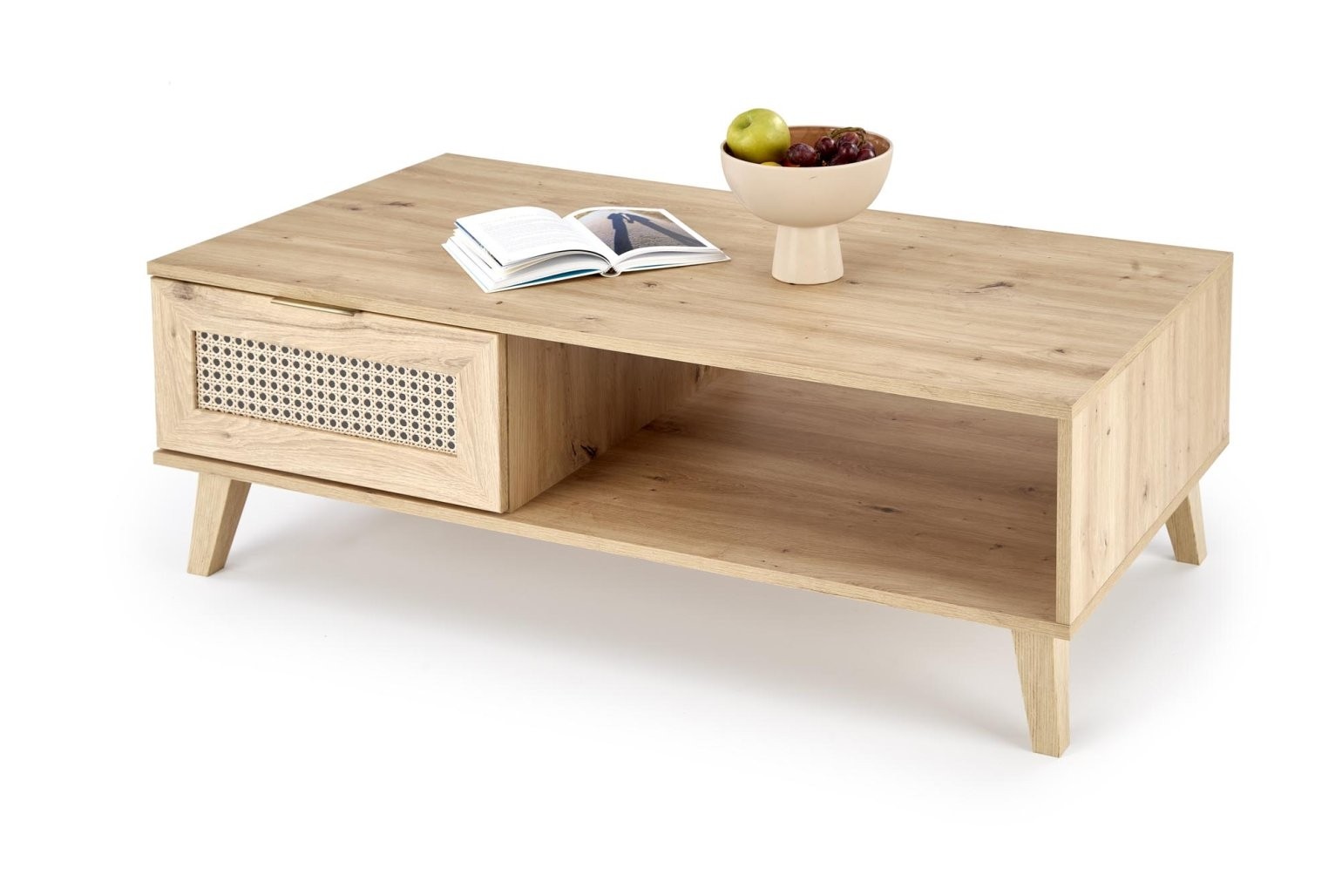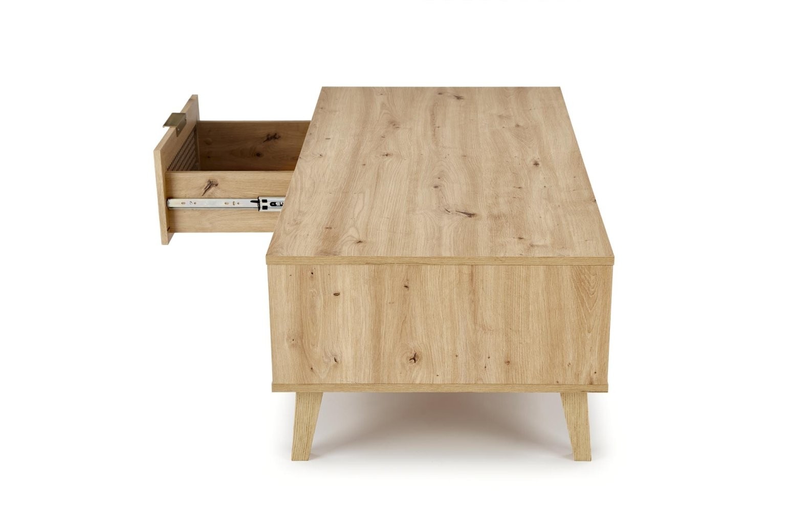 Klubska mizica Ulenar v barvi hrasta in črne barve prinaša pridih modernosti in skandinavskega stila v dnevni prostor z ravno pravšnjo višino.