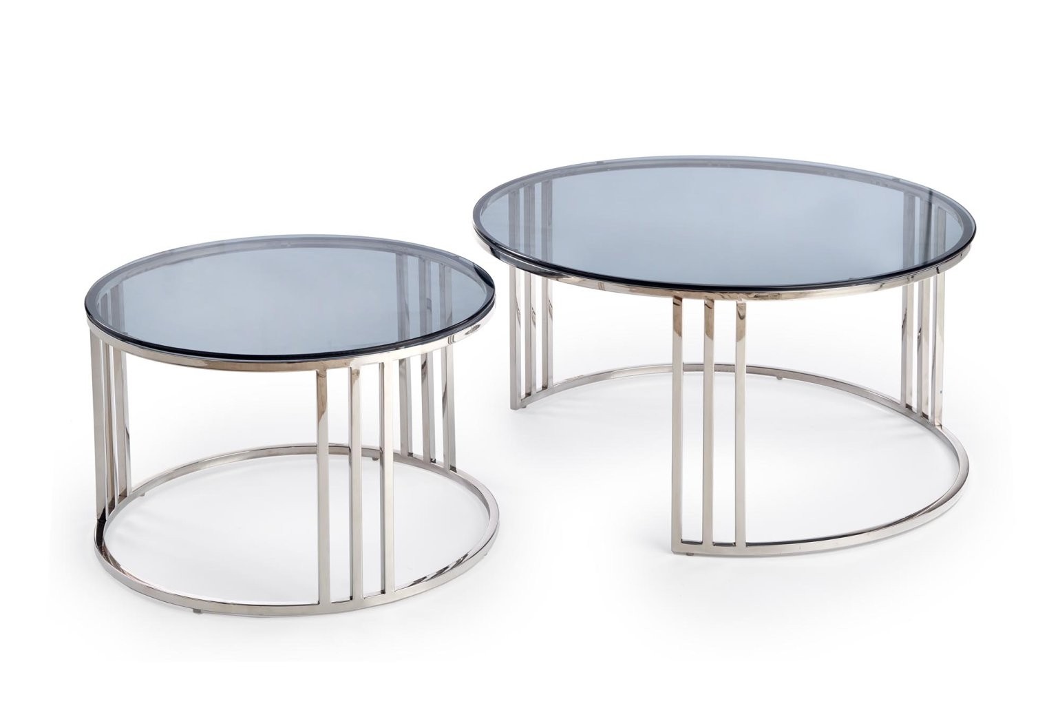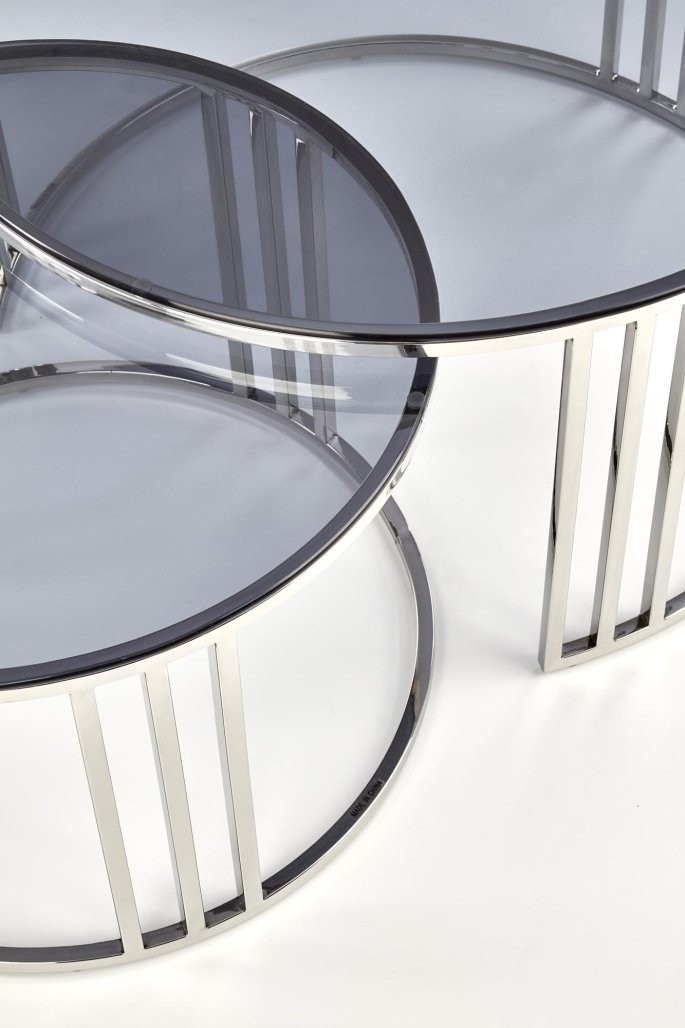 Klubska mizica Uril z dimljenim steklom in kromiranimi nogami iz nerjavečega jekla. Sodoben in prestižen dizajn, idealen za elegantno dnevno sobo.